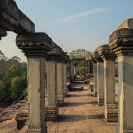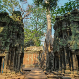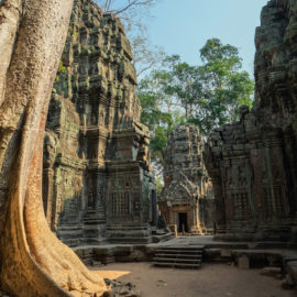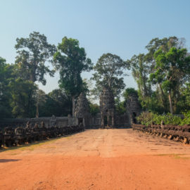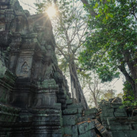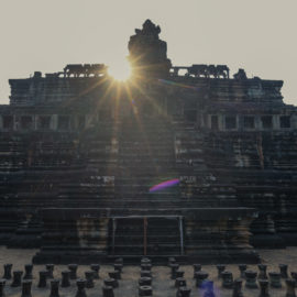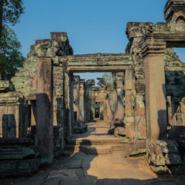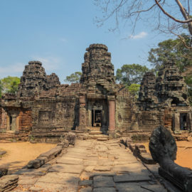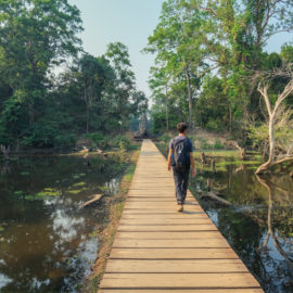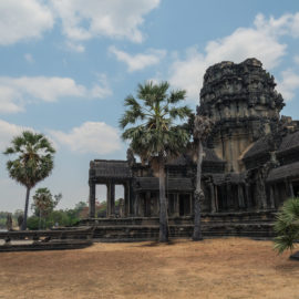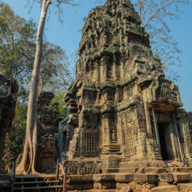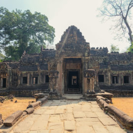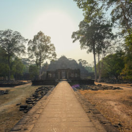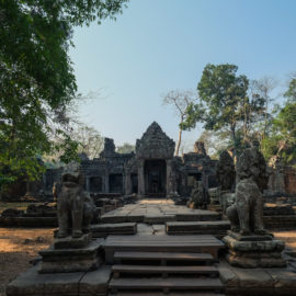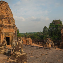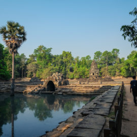 Ensuite nous avons poursuivi avec la visite de plusieurs autres temples. Ils étaient tous plus petits et plus isolés que ceux déjà visités la veille mais chacun avait son petit quelque chose de sympa. Il y en avait un posé sur l’eau et constituait à lui seul une île. La passerelle pour rejoindre l’île était entourée d’arbre posé dans l’eau, c’était très joli. Voilà, cette journée prenait fin et nos plans pour rejoindre la France se précisait. Nous avions réservé un vol pour le 27/03. Ce soir là nous prenions un bus de nuit pour rejoindre l’île de Koh Rong où nous avions décidé de terminer notre séjour au Cambodge.