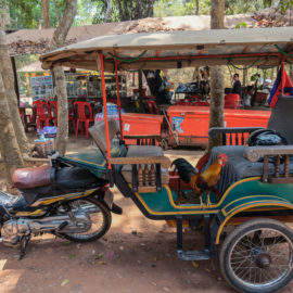 Comme nous voulions profiter un peu du Cambodge avant de reprendre la route du retour en France de façon anticipée, nous avons commencé par aller en direction de la ville de Siem Reap. C’est la bas que se trouvent les fameux temples d’Angkor. Nous avons pu expérimenter la conduite cambodgienne à bord d’un minibus. Ici nous avions chacun notre place par contre le chauffeur roulait toujours aussi mal. C’est pas leur truc la conduite dans les pays d’Asie. Ils sont tellement dangereux à doubler à droite et à gauche. Ce qui sert chez nous de bande d’arrêt d’urgence est une route à part entière là-bas. La vitesse ne semble pas être règlementée et les arrêts sur les zébras sont autorisés !! Voilà quelques règles originales de conduite. Après avoir passé 5-6 heures sur la route nous sommes enfin arrivé à destination. Le temps pour nous de rejoindre notre hôtel et de négocier un tuk tuk pour les visites du lendemain.