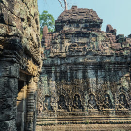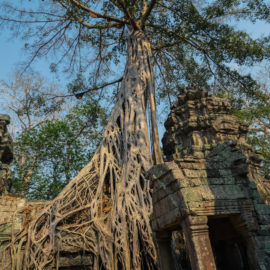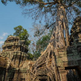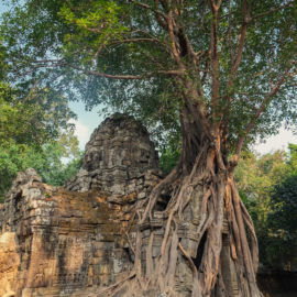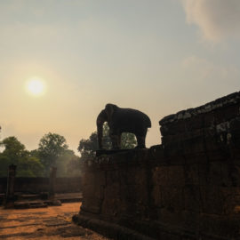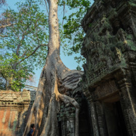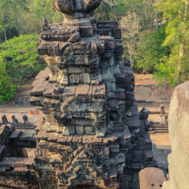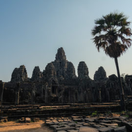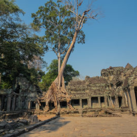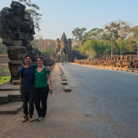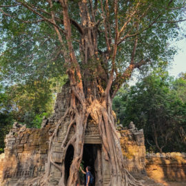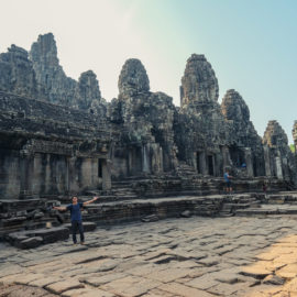 Nous avons continué avec la visite de plusieurs autres temples, une petite dizaine je dirais pour finir avec l’autre temple le plus connu: Angkor Thom avec tous ces visages de bouddha répartis sur ce site. Les temples ont été construits au temps des rois et monarques. Chacun faisait construire son temple au milieu de la forêt et beaucoup, du fait des guerres et des années passées, n’ont pas tenu le choc. Nous avons beaucoup apprécié ces visites et découvrir la façon dont la nature a repris du terrain avec ces arbres majestueux posé sur le toit d’un temple ou au milieu d’un gros mur de délimitation. La taille de ces arbres est toujours très impressionnante. Nous ne sommes pas à nos premiers arbres géant mais l’étonnement reste intacte et ce sentiment de petitesse à côté d’eux est toujours le même.