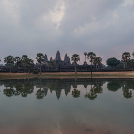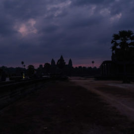 Pour ce second et dernier jour ici, nous avions décidé de nous lever tôt pour aller admirer notre dernier levé de soleil. Celui-ci allait avoir lieux devant le temple d’Angkor Wat, le dessin de celui-ci figure sur le drapeau du Cambodge. Contrairement à la veille il y avait un peu de monde mais ça restait très raisonnable. Dommage pour nous ce levé de soleil s’est fait dans les nuages mais c’était quand même très joli.