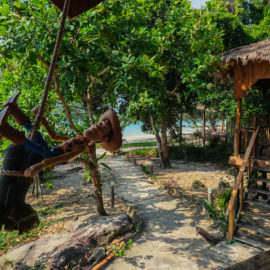 Après un énième, mais parmi les derniers, trajet en bus, nous sommes arrivés à Sihanoukville où nous devions prendre un ferry pour rejoindre l’île. Il était encore tôt donc on a dû attendre deux bonnes heures avant de monter sur le ferry. C’est en milieu de matinée que nous avons pu rejoindre notre petit bungalow sur piloti situé face à la mer. Enfin ça allait être du repos…eh non pas du tout ! À l’arrivée sur cet endroit magnifique avec la plage de sable fin et l’eau turquoise, nous apprenions qu’une partie du vol que nous avions réservé la veille venait d’être annulé. Nous avons donc dû passer le reste de notre journée à trouver une solution et à contacter le vendeur pour espérer obtenir un remboursement ! Au final, après avoir obtenu la confirmation que nous pourrions faire le premier trajet du vol, nous avons réservé un nouveau billet depuis cette étape jusqu’à Paris.