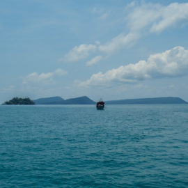Nous étions bien déterminé à rentrer à la capitale aujourd’hui pour avoir plus de chance de sauter dans le premier avion qui allait se présenter dans les jours à suivre. Pour ça il fallait déjà partir de cette île et heureusement pour nous, une compagnie de ferry autre que celle que nous devions prendre à accepter de nous ramener à Sihanoukville. On a même eu droit à un trajet sur un petit bateau privé (où nous étions 4) plutôt qu’à un vieux ferry. La première étape était passé. Ensuite il a fallut prendre un minibus pour rejoindre Phnom Penh. Nous avions réservé notre place et le gars nous annonçait un départ à 13h30, c’était parfait. Ça nous laissait à peine une heure pour se poser et checker les dernières infos sur les futurs vols… Au final, comme le minibus n’était pas plein nous avons dû attendre que suffisamment de monde soit présent. Ça nous a laissé le temps de faire connaissance avec deux canadiens et une française qui étaient dans la même galère que nous ! Nous sommes partis avec plus d’une heure et demi de retard. Le trajet était long, même interminable. Nous avons atteint notre destination vers 21h.