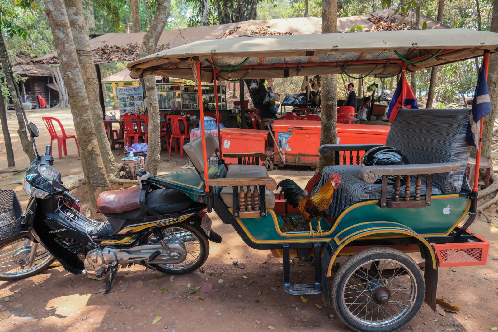 Comme nous voulions profiter un peu du Cambodge avant de reprendre la route du retour en France de façon anticipée, nous avons commencé par aller en direction de la ville de Siem Reap. C’est la bas que se trouvent les fameux temples d’Angkor. Nous avons pu expérimenter la conduite cambodgienne à bord d’un minibus. Ici nous avions chacun notre place par contre le chauffeur roulait toujours aussi mal. C’est pas leur truc la conduite dans les pays d’Asie. Ils sont tellement dangereux à doubler à droite et à gauche. Ce qui sert chez nous de bande d’arrêt d’urgence est une route à part entière là-bas. La vitesse ne semble pas être règlementée et les arrêts sur les zébras sont autorisés !! Voilà quelques règles originales de conduite. Après avoir passé 5-6 heures sur la route nous sommes enfin arrivé à destination. Le temps pour nous de rejoindre notre hôtel et de négocier un tuk tuk pour les visites du lendemain.