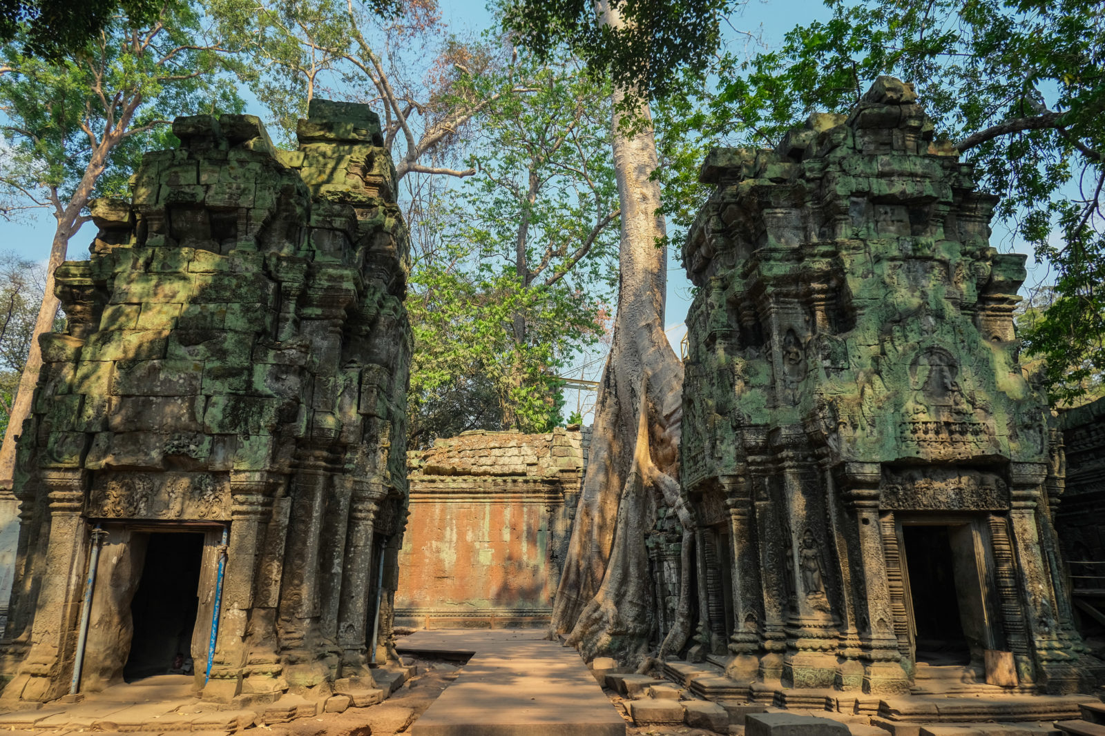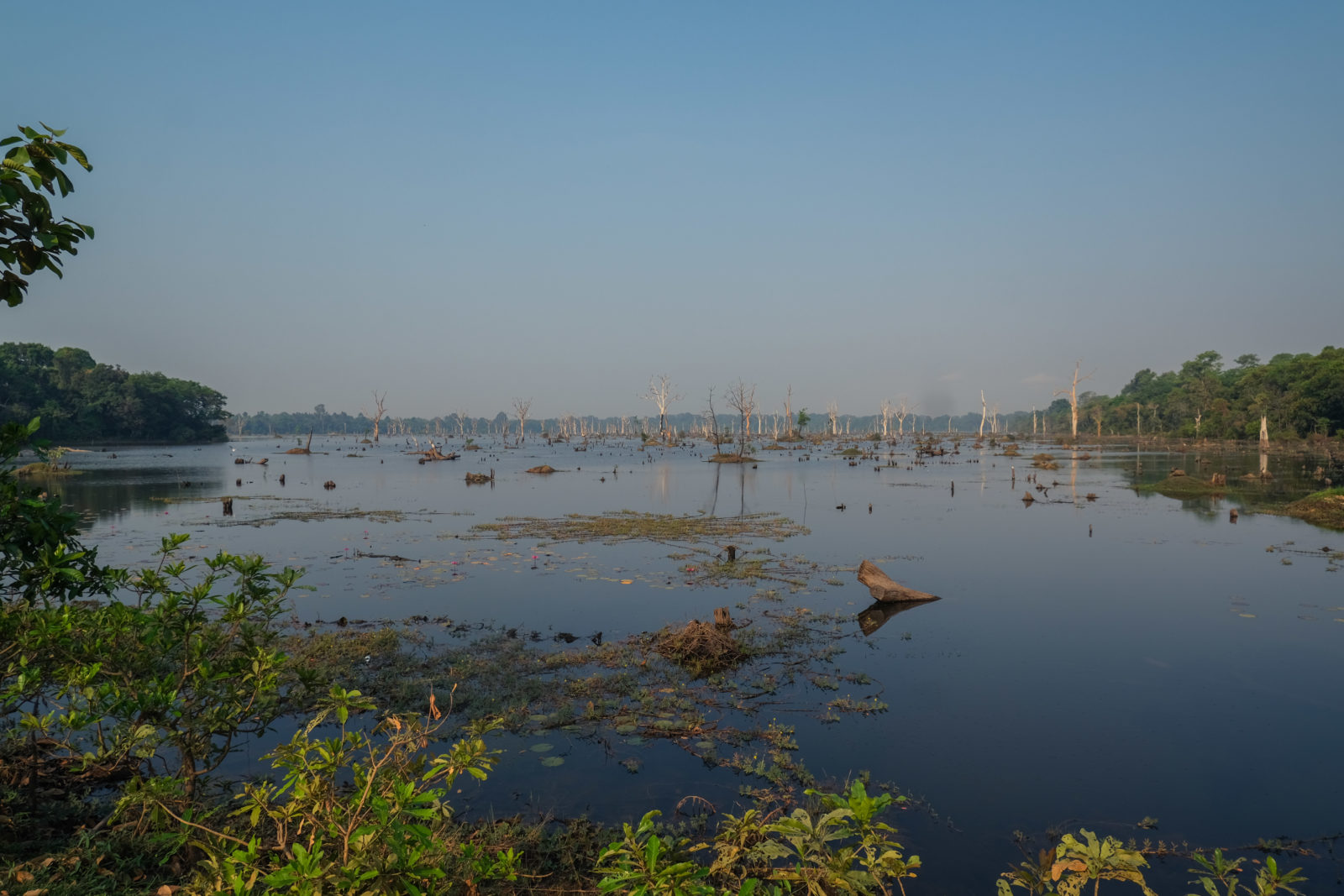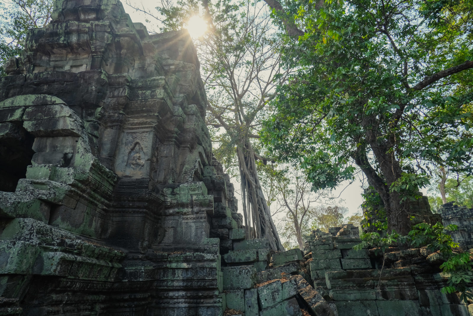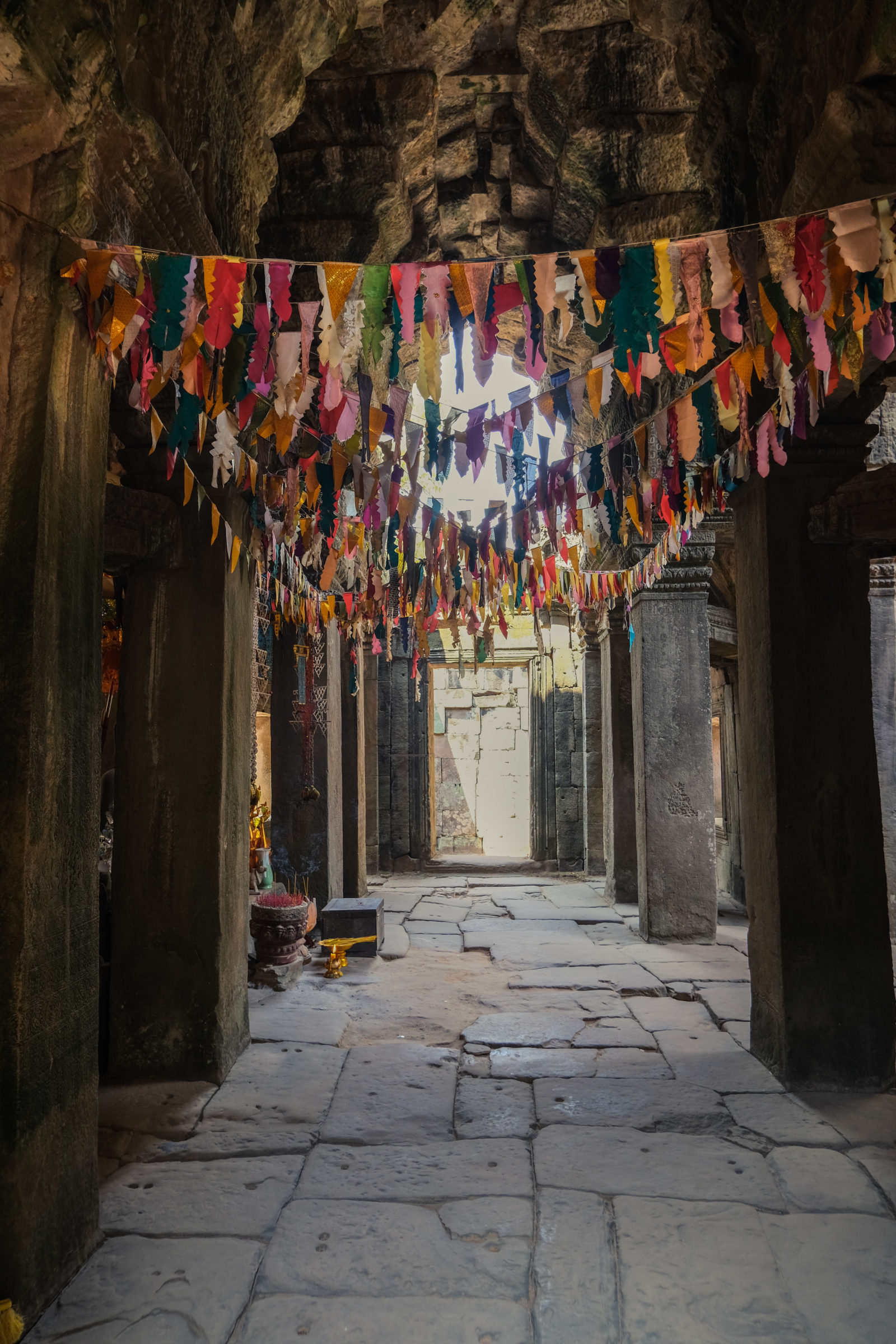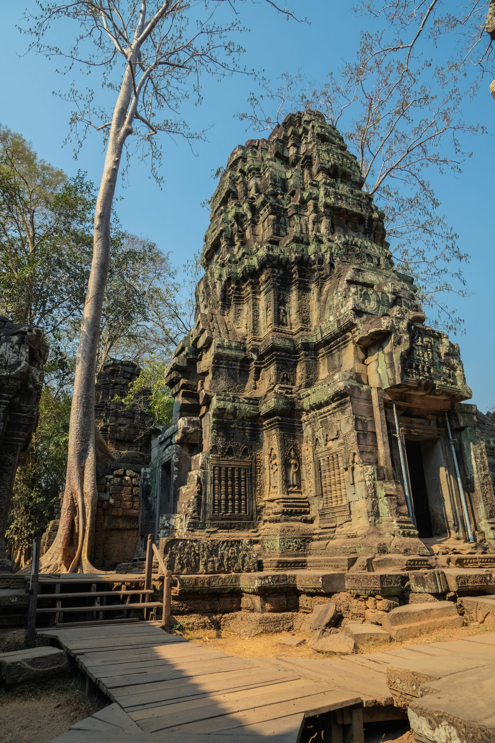 Ensuite nous avons poursuivi avec la visite de plusieurs autres temples. Ils étaient tous plus petits et plus isolés que ceux déjà visités la veille mais chacun avait son petit quelque chose de sympa. Il y en avait un posé sur l’eau et constituait à lui seul une île. La passerelle pour rejoindre l’île était entourée d’arbre posé dans l’eau, c’était très joli. Voilà, cette journée prenait fin et nos plans pour rejoindre la France se précisait. Nous avions réservé un vol pour le 27/03. Ce soir là nous prenions un bus de nuit pour rejoindre l’île de Koh Rong où nous avions décidé de terminer notre séjour au Cambodge.