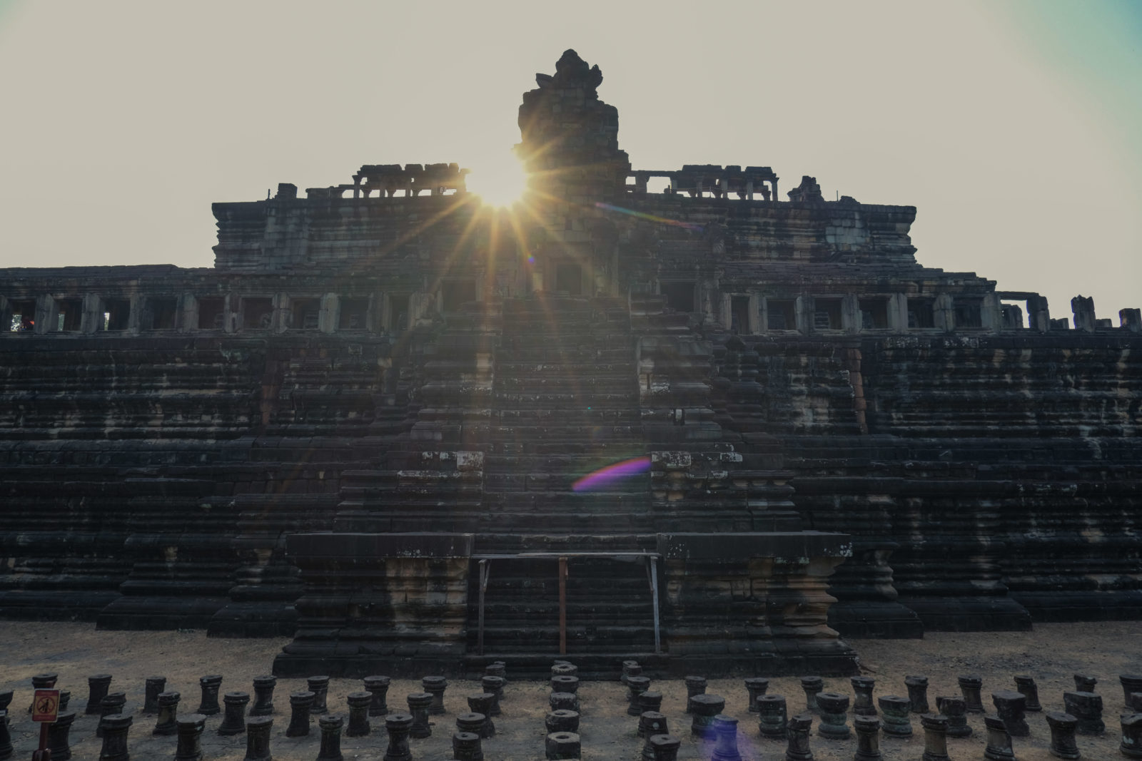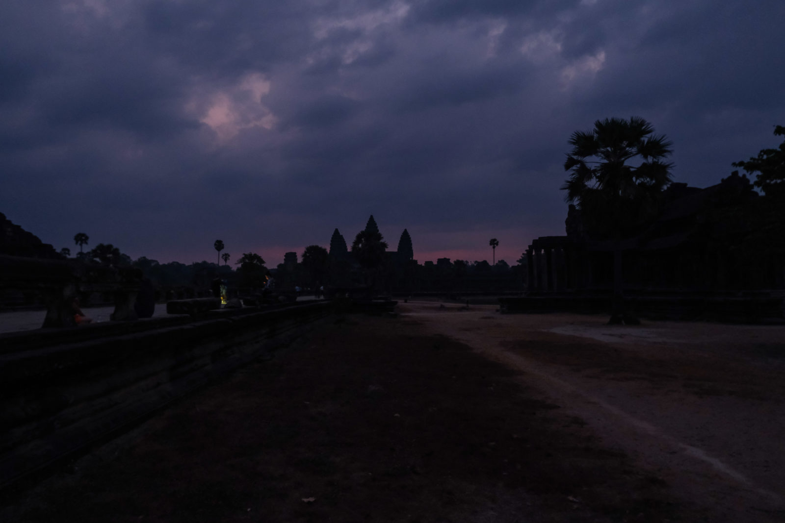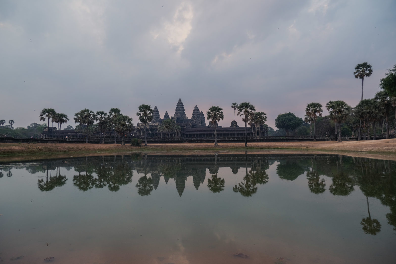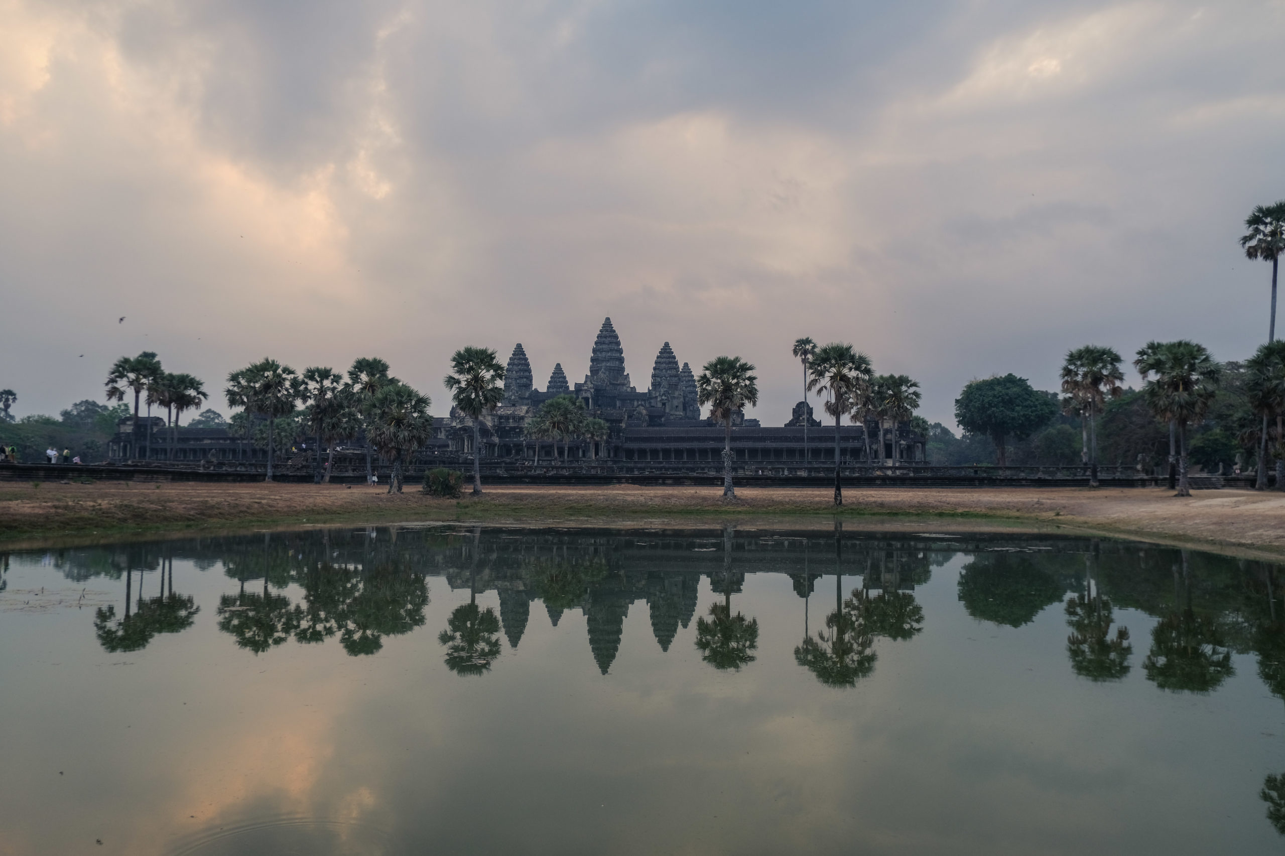 Pour ce second et dernier jour ici, nous avions décidé de nous lever tôt pour aller admirer notre dernier levé de soleil. Celui-ci allait avoir lieux devant le temple d’Angkor Wat, le dessin de celui-ci figure sur le drapeau du Cambodge. Contrairement à la veille il y avait un peu de monde mais ça restait très raisonnable. Dommage pour nous ce levé de soleil s’est fait dans les nuages mais c’était quand même très joli.