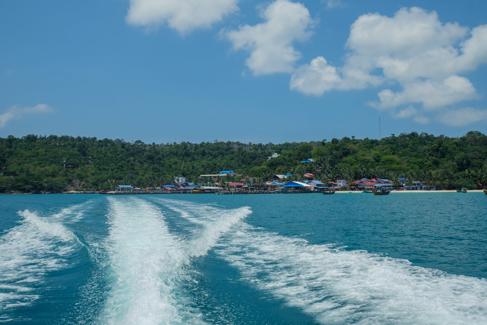 Après un énième, mais parmi les derniers, trajet en bus, nous sommes arrivés à Sihanoukville où nous devions prendre un ferry pour rejoindre l’île. Il était encore tôt donc on a dû attendre deux bonnes heures avant de monter sur le ferry. C’est en milieu de matinée que nous avons pu rejoindre notre petit bungalow sur piloti situé face à la mer. Enfin ça allait être du repos…eh non pas du tout ! À l’arrivée sur cet endroit magnifique avec la plage de sable fin et l’eau turquoise, nous apprenions qu’une partie du vol que nous avions réservé la veille venait d’être annulé. Nous avons donc dû passer le reste de notre journée à trouver une solution et à contacter le vendeur pour espérer obtenir un remboursement ! Au final, après avoir obtenu la confirmation que nous pourrions faire le premier trajet du vol, nous avons réservé un nouveau billet depuis cette étape jusqu’à Paris.