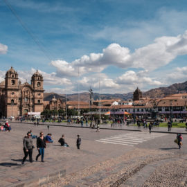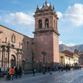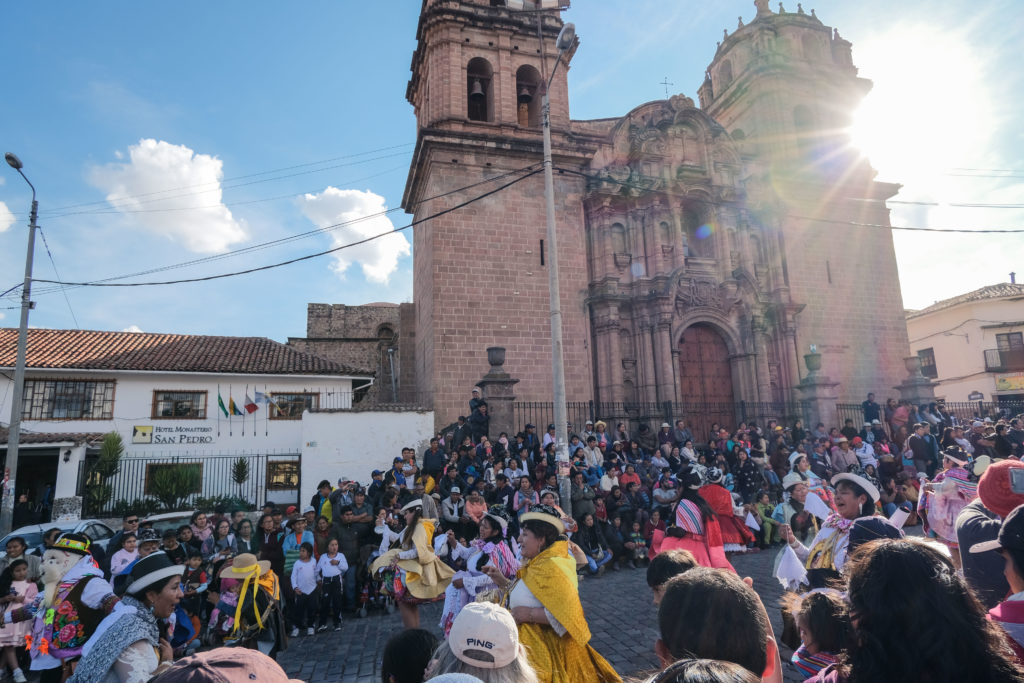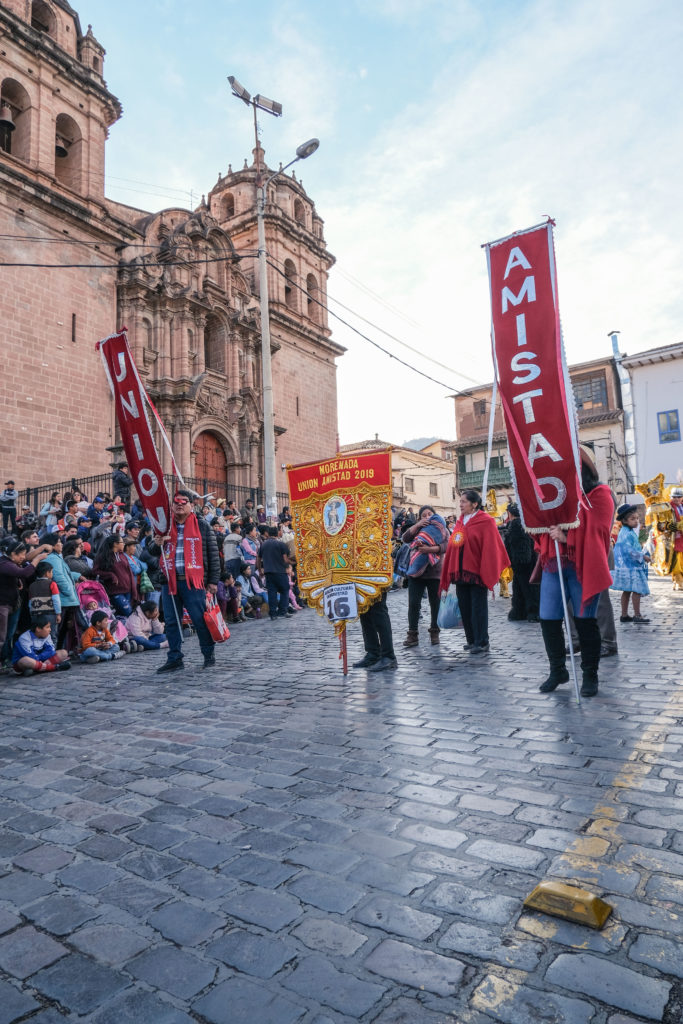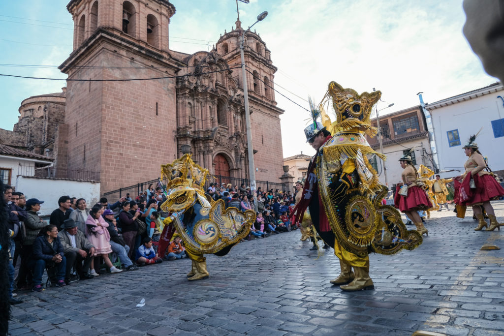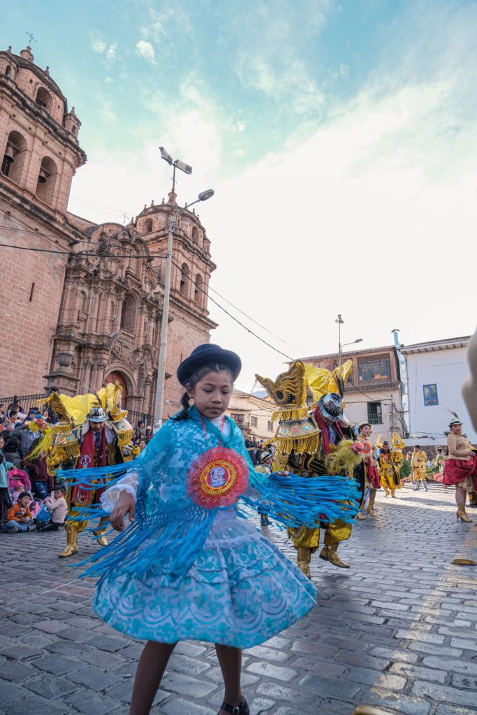 Finalement ce trajet nous aura suivi toute la 1re journée à Cusco, car on avait encore tellement mal à la tête ou au ventre. On avait rien manger aussi donc c’était peut-être une des raisons de notre état végétatif. On a quand même réussi à aller faire un tour dans Cuzco. On est aller visiter le centre historique, Tom a fait sa princesse en se faisant « cirer » plutôt nettoyer ses baskets. C’est un job assez répandu, les p’tits gars qui font ça, déambulent dans les rues et cherchent les paires de chaussures à nettoyer contre quelques soles ! Après ce petit caprice ;), on a continué à visiter et on a encore eu la chance de tomber sur une fête qui semblait être religieuse. En tout cas c’était beau, les gens défilaient avec leurs déguisements ou leurs habits traditionnelles. Les femmes dansaient dans leurs belles robes colorées et les hommes étaient soit en costume, soit en habit de lumière que je ne saurais décrire (ou en gorille, on en a vu 3) ?! Ouais on n’a pas compris nous non plus !