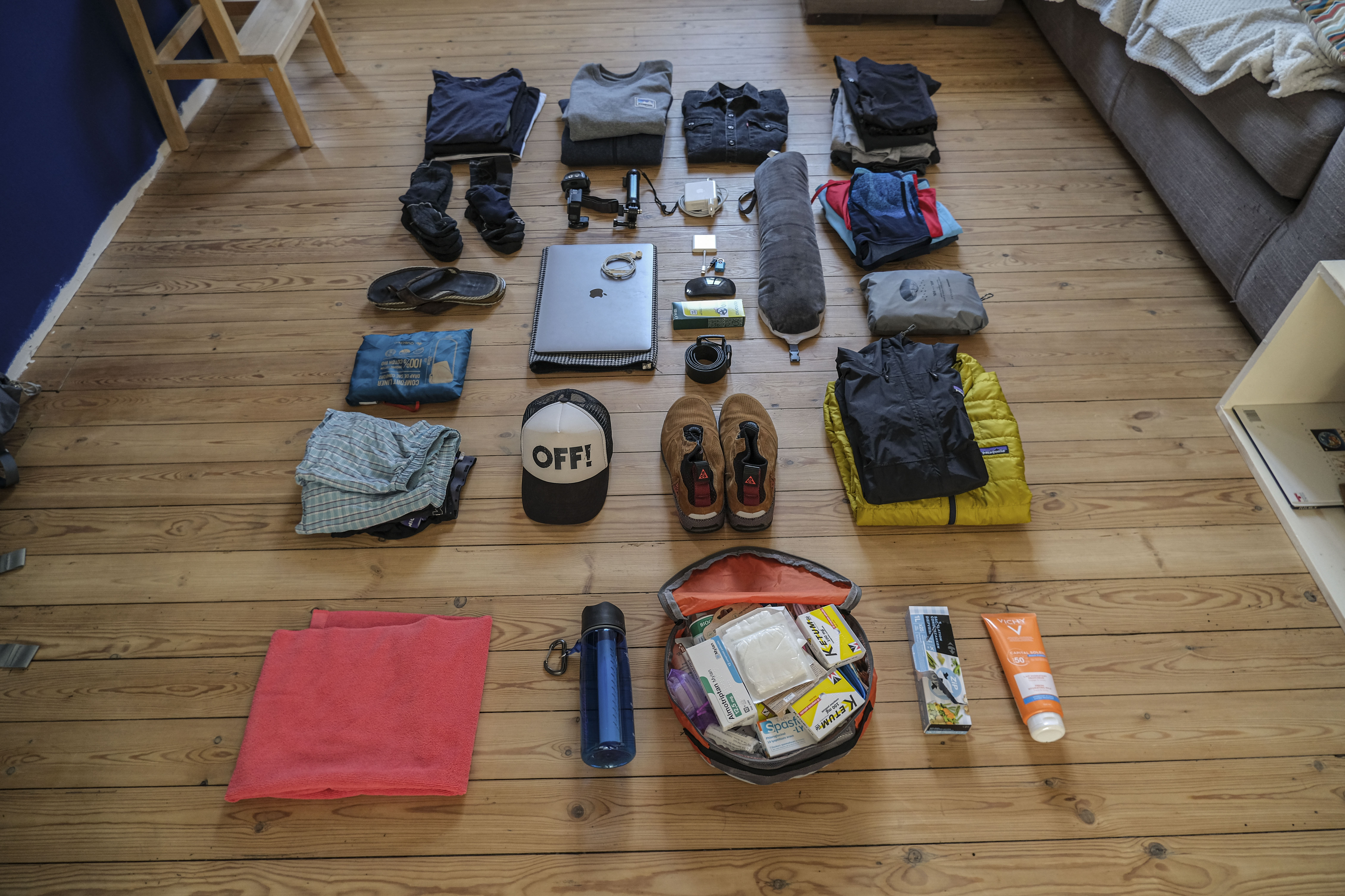 Ah la la, j’en connais un qui m’dirait d’en prendre de la graine pour éviter d’emmener toujours 15 milliards de choses inutiles (euh…. particulièrement des fringues pour « si il fait un peu plus frais le soir » ou « s’il pleut » etc…. )