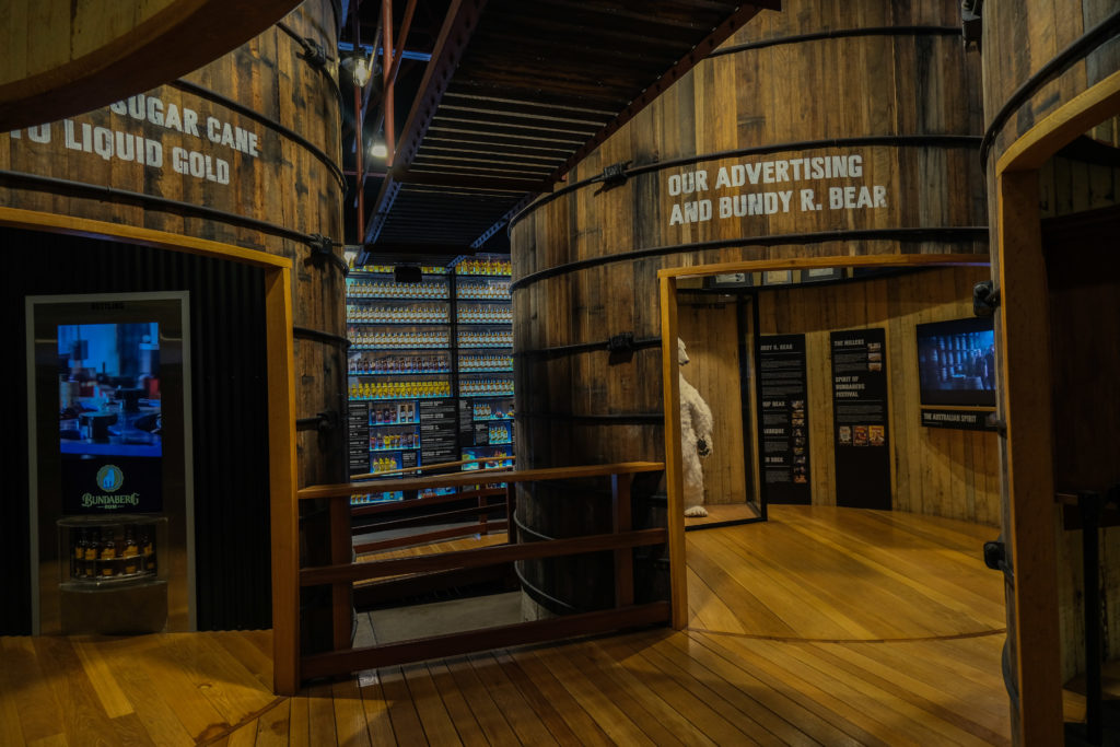 La maison s’appelle comme la ville: Bundaberg, plusieurs rhum ont reçu le prix du meilleur rhum du monde. Il y en avait notamment un dont le guide nous a pas mal parlé (du fait de notre présence pendant ce tour) car il passe l’étape de l’affinage dans une barrique qui a précédemment accueillie du cognac et qui vient directement de France. La visite était très sympa, on a pu voir l’ensemble des étapes nécessaires à la réalisation de bon rhum. Évidemment les appareils photo et téléphones n’étaient pas autorisé pendant le tour (au cas où on leur volerait leur recette secrète) dommage on peut pas vous montrer !!