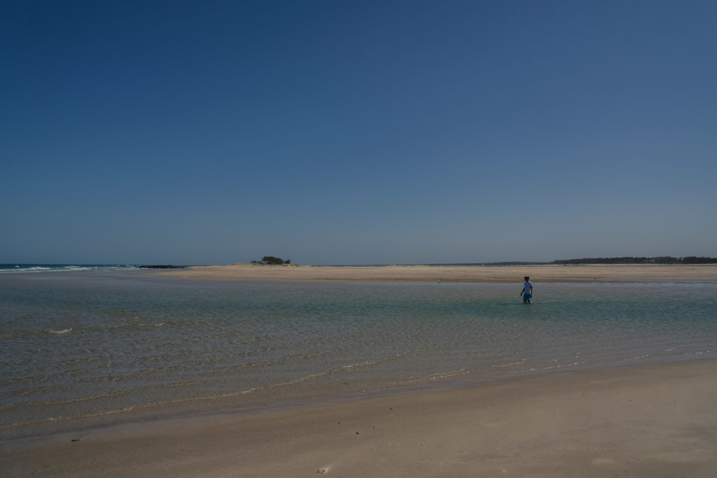 Ce jour là nous sommes arrivée à Rainbow Beach pour une journée plage (enfin…nous avions hâte d’aller dans l’eau parce qu’il commence à faire chaud dans c’pays). Des 8h il faisait déjà plus de 25 degrés donc direct après le p’tit dej’ on est parti profiter de l’océan et de ses belles vagues. Des vagues assez sympa pour les surfers toujours très présent dans l’eau. L’eau était fraîche mais on a vu pire 😊.