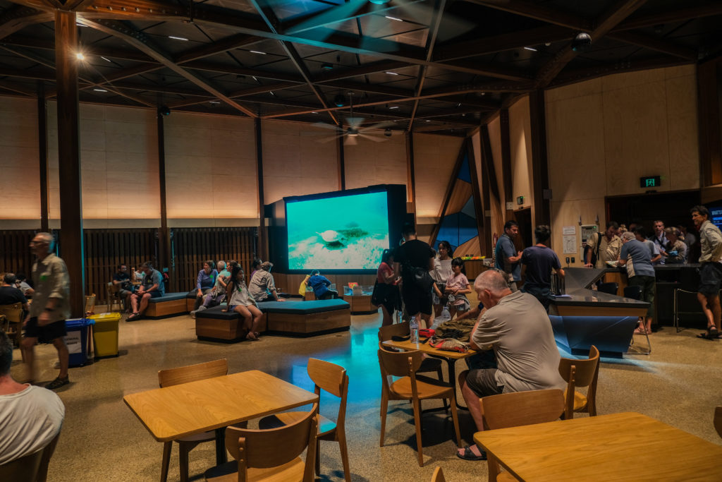Nous n’avons pas été déçu de nous être arrêté ici par hasard !! C’était très chouette. Après ce pur moment, nous avons tout de même pris le temps de visiter le centre qui est très instructif et éducatif. Nous avons pu découvrir les différentes sorte de tortues qui vivent autour de l’Australie, la façon dont les biologistes leur mettent une balise pour leur permettre de tracer leur voyage et connaître les habitudes de chacune. Également la partie sombre et malheureuse que le centre a, à raison mis en lumière, c’est la façon dont l’Homme avec ses déchets plastique (qui se retrouvent en mer) blesse les tortues.