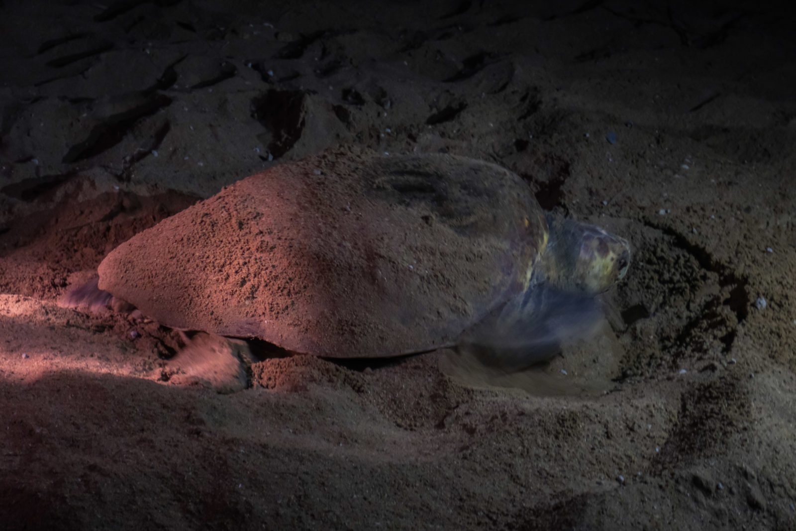 À notre arrivée au centre des tortues nous avons été accueillis par des belles chauves-souris (elles étaient assez balaise) et après avoir été présenté à notre guide nous sommes partis sur la plage. La mauvaise surprise fut d’être quasiment une cinquantaine de personne à faire cette découverte. On se marchait quand même un peu dessus et la pauvre tortue que nous avons vu s’est pris plein de flash dans la tête. Heureusement que nous n’avons eu l’autorisation de prendre des photos qu’une seule fois ! Bref, cette rencontre avec une tortue venue sur la plage pondre ses œufs était carrément folle. Lorsque nous sommes arrivés pour la voir, elle était déjà installée, son trou était fait et elle avait déjà commencé à pondre. La guide et un autre biologiste ont pris plusieurs mesures, lui ont posés une bague pour éventuellement la retrouver l’année prochaine et après qu’elle ait terminé de pondre, ils ont déplacé les œufs (un peu plus haut) pour éviter que les personnes venant sur cette plage la journée s’allongent dessus sans le savoir. Nous avons également puis suivre et regarder cette énorme tortue regagner l’océan… c’était fou de vivre cet instant.