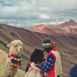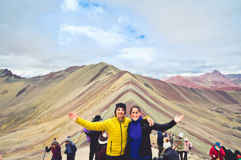 À part ça, je peux quand vous raconter comment s’est passé la montée… c’était un peu, nan très dur. Le manque d’oxygène (du fait de l’attitude) et les montées bien bien pentues ainsi que la masse de personne qui avait eu la même idée que nous, ça a piqué ! Mais arrivé en haut on n’a pas été déçu ! C’était un très beau paysage, la montagne aux 7 couleurs devant nous, la montagne rouge derrière nous et le glacier un peu plus loin, les photos ne reflètent même pas la réelle beauté de ce paysage. On est trop désolé ! Et en plus il y avait des sortes de petits aigles qui volaient au-dessus de nous et en descendant on a pu apercevoir sur plusieurs plaines des dizaines d’alpagas !! Ils étaient troooop beaux 😍. C’est plus que sûr maintenant j’en veux un voire deux ou trois (il ne faudrait pas qu’ils s’ennuient). Il va falloir agrandir le jardin !! Le regret est de ne pas avoir pu profiter de ce paysage assez longtemps car encore une fois l’altitude a fait mal à nos petits corps d’Occidentaux et en plus, perché à environ 5800 mètres au dessus du niveau de la mer, ça caille !! La journée a été éprouvante car levé tôt et ce mal de crâne a duré mais c’était une bonne journée avec deux belles rencontres, Charlotte et Fleur, deux parisiennes en vacances avec qui nous avons pu partager une partie de cette aventure et échanger nos expériences pendant le repas du midi. Merci à vous les filles, c’était très sympa et vous aurez été notre bouffée d’air de cette journée !! 😊