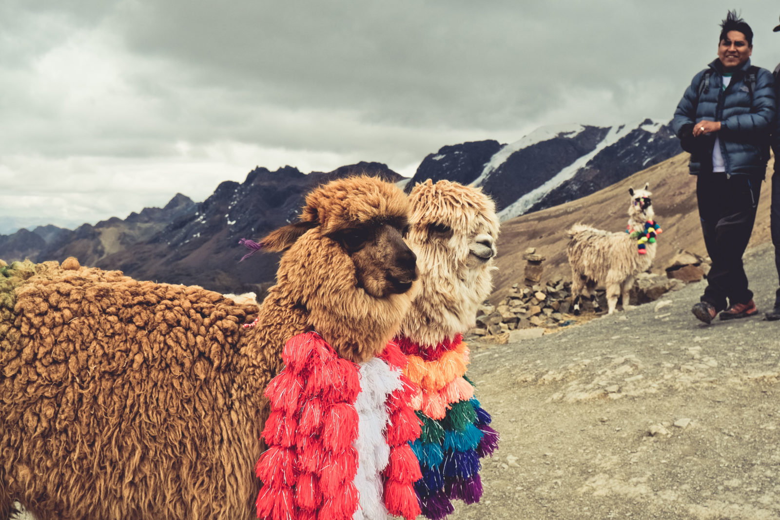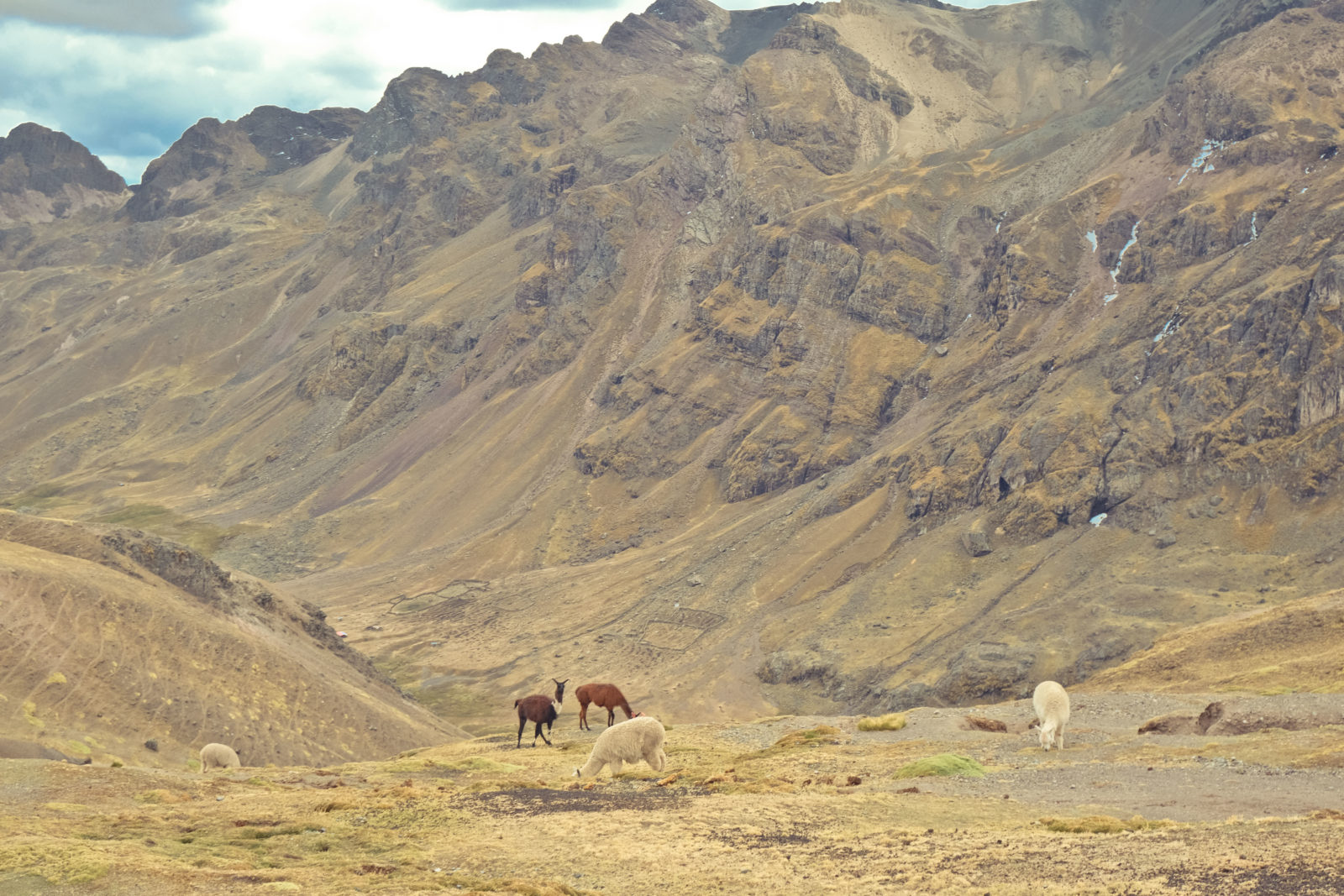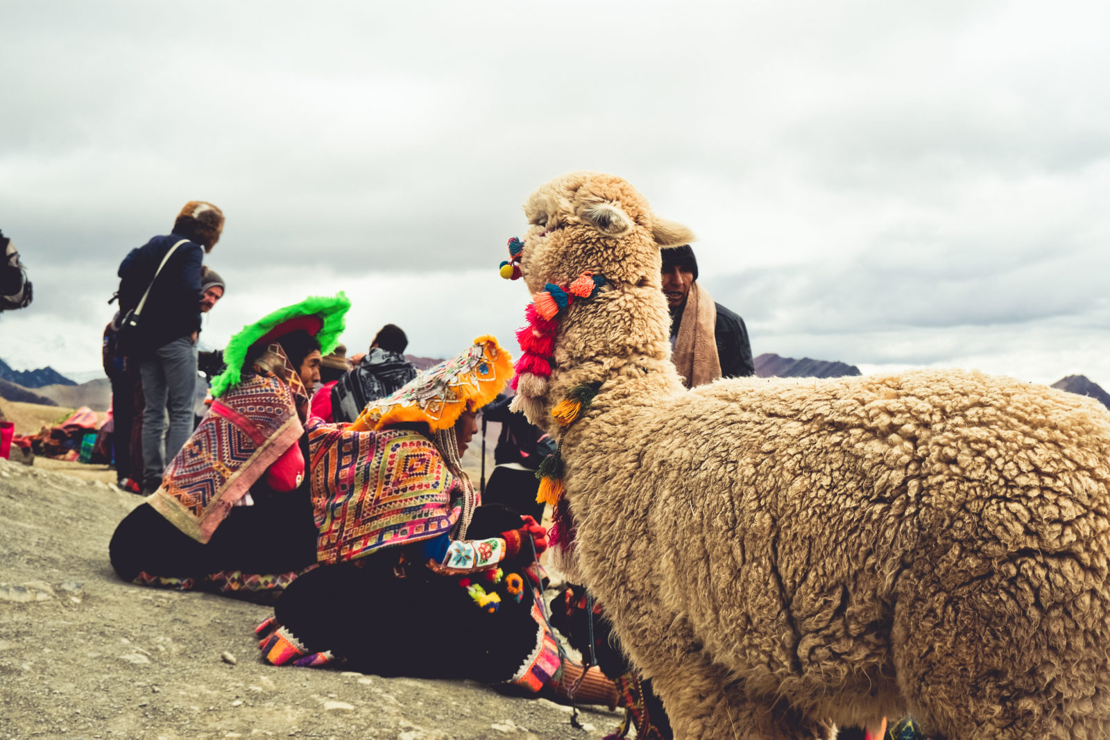 À part ça, je peux quand vous raconter comment s’est passé la montée… c’était un peu, nan très dur. Le manque d’oxygène (du fait de l’attitude) et les montées bien bien pentues ainsi que la masse de personne qui avait eu la même idée que nous, ça a piqué ! Mais arrivé en haut on n’a pas été déçu ! C’était un très beau paysage, la montagne aux 7 couleurs devant nous, la montagne rouge derrière nous et le glacier un peu plus loin, les photos ne reflètent même pas la réelle beauté de ce paysage. On est trop désolé ! Et en plus il y avait des sortes de petits aigles qui volaient au-dessus de nous et en descendant on a pu apercevoir sur plusieurs plaines des dizaines d’alpagas !! Ils étaient troooop beaux 😍. C’est plus que sûr maintenant j’en veux un voire deux ou trois (il ne faudrait pas qu’ils s’ennuient). Il va falloir agrandir le jardin !! Le regret est de ne pas avoir pu profiter de ce paysage assez longtemps car encore une fois l’altitude a fait mal à nos petits corps d’Occidentaux et en plus, perché à environ 5800 mètres au dessus du niveau de la mer, ça caille !! La journée a été éprouvante car levé tôt et ce mal de crâne a duré mais c’était une bonne journée avec deux belles rencontres, Charlotte et Fleur, deux parisiennes en vacances avec qui nous avons pu partager une partie de cette aventure et échanger nos expériences pendant le repas du midi. Merci à vous les filles, c’était très sympa et vous aurez été notre bouffée d’air de cette journée !! 😊
