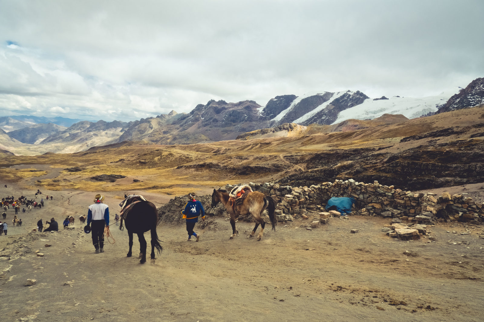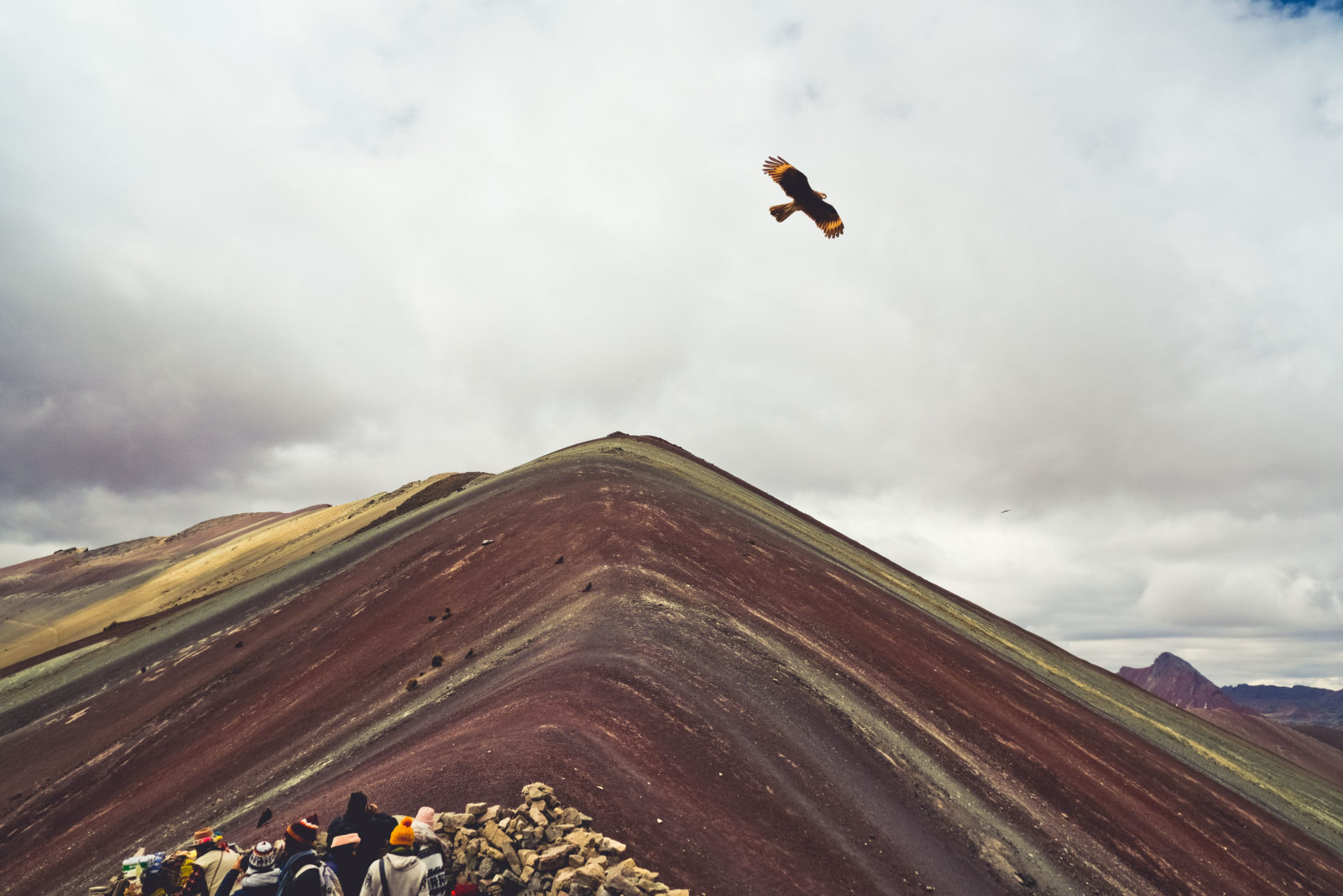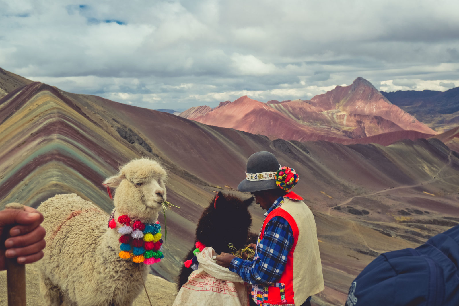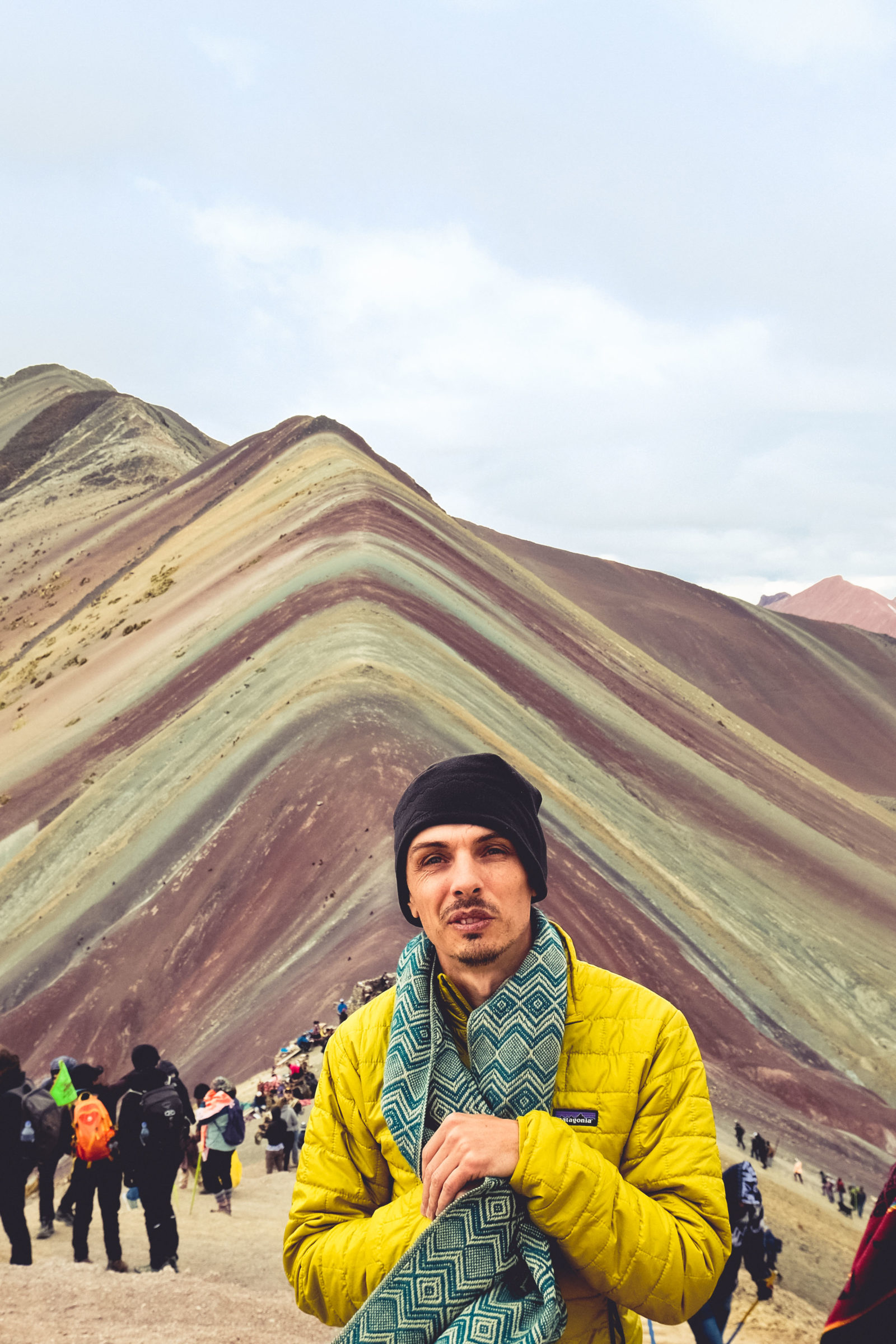 À part ça, je peux quand vous raconter comment s’est passé la montée… c’était un peu, nan très dur. Le manque d’oxygène (du fait de l’attitude) et les montées bien bien pentues ainsi que la masse de personne qui avait eu la même idée que nous, ça a piqué ! Mais arrivé en haut on n’a pas été déçu ! C’était un très beau paysage, la montagne aux 7 couleurs devant nous, la montagne rouge derrière nous et le glacier un peu plus loin, les photos ne reflètent même pas la réelle beauté de ce paysage. On est trop désolé ! Et en plus il y avait des sortes de petits aigles qui volaient au-dessus de nous et en descendant on a pu apercevoir sur plusieurs plaines des dizaines d’alpagas !! Ils étaient troooop beaux 😍. C’est plus que sûr maintenant j’en veux un voire deux ou trois (il ne faudrait pas qu’ils s’ennuient). Il va falloir agrandir le jardin !! Le regret est de ne pas avoir pu profiter de ce paysage assez longtemps car encore une fois l’altitude a fait mal à nos petits corps d’Occidentaux et en plus, perché à environ 5800 mètres au dessus du niveau de la mer, ça caille !! La journée a été éprouvante car levé tôt et ce mal de crâne a duré mais c’était une bonne journée avec deux belles rencontres, Charlotte et Fleur, deux parisiennes en vacances avec qui nous avons pu partager une partie de cette aventure et échanger nos expériences pendant le repas du midi. Merci à vous les filles, c’était très sympa et vous aurez été notre bouffée d’air de cette journée !! 😊