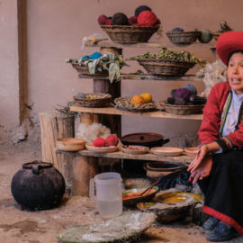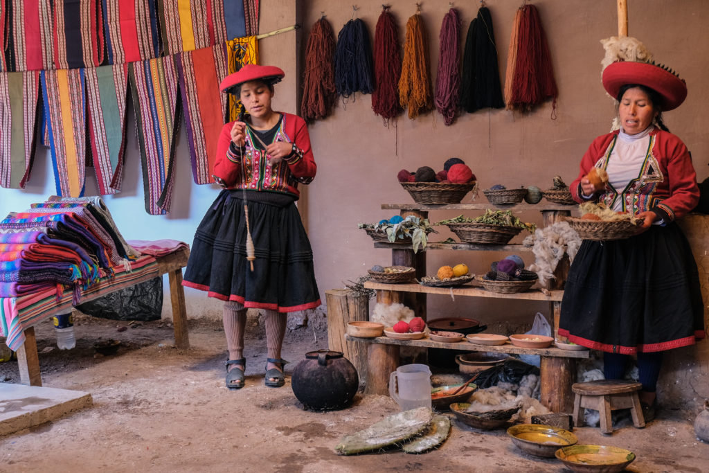 Concernant les visites, on a commencé par la fabrique des tissus traditionnels. C’était canon, accueilli avec une tasse de thé de Muña, une dame nous a expliqué et montré comment la laine d’alpaga est lavée et teintée avant d’être filée. Pour la teinte elles utilisent principalement des plantes (de coca notamment), des fleurs, du maïs noir et aussi (c’était ça la p’tite démo) des insectes ou larves qui viennent se nicher sur les cactus. Elle était trop mignonne, pour la démo elle a pris une larve et nous a regardé en disant « je fais un sacrifice » et elle a écrasé cette p’tite bête. La paume de sa main est devenue rouge très très vif et ensuite pour atténuer la couleur elle a juste utilisé du citron vert. C’était un chouette instant et après évidemment on a été invité à aller acheter des pièces de leur confection. J’ai juste craqué sur un plaid et une écharpe, ça va !