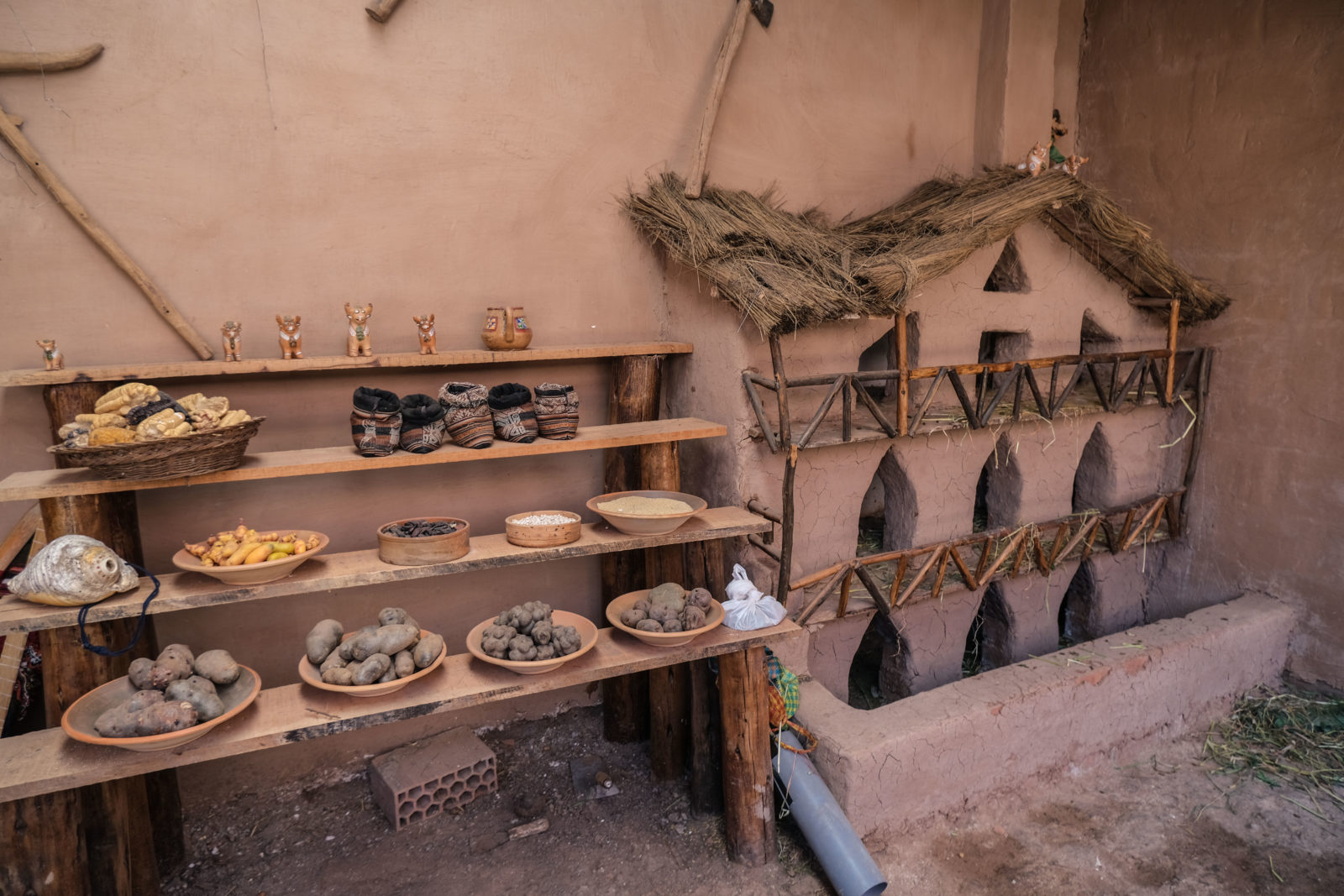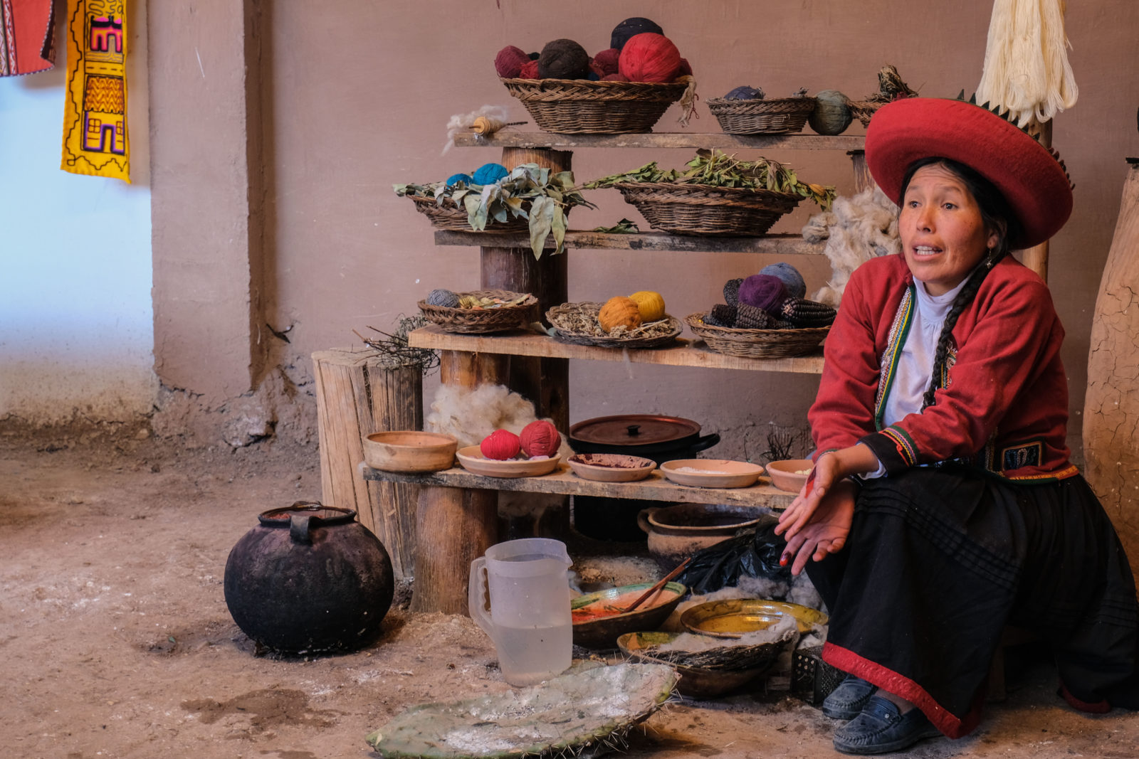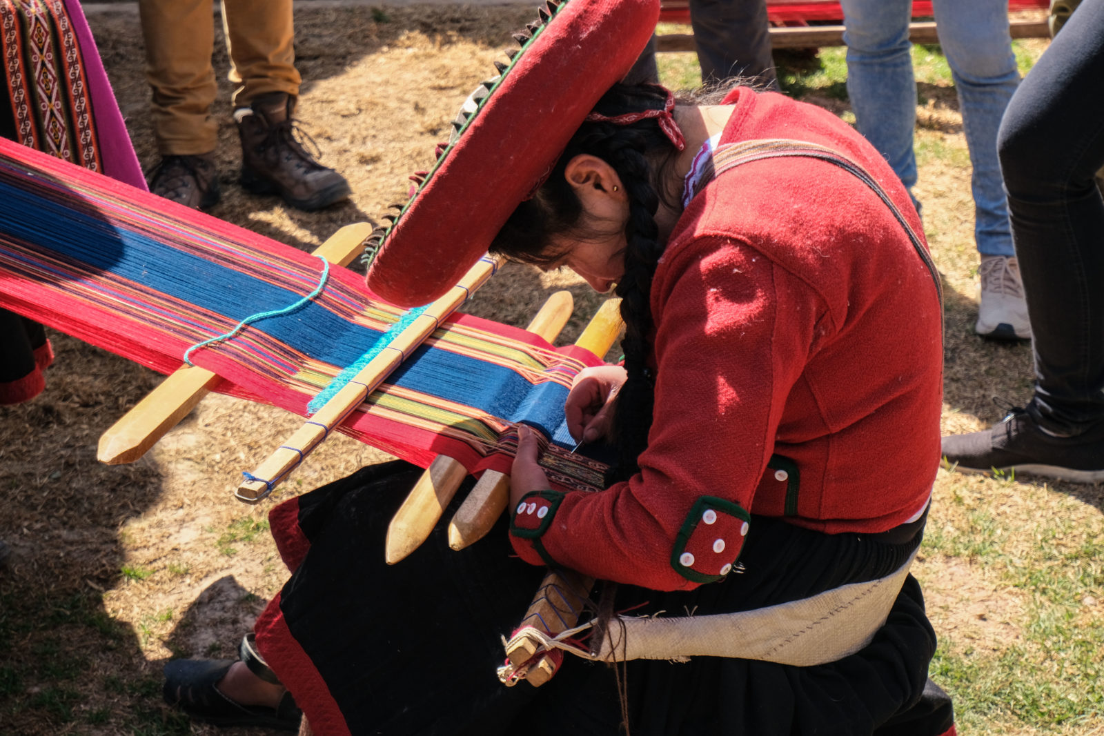 Concernant les visites, on a commencé par la fabrique des tissus traditionnels. C’était canon, accueilli avec une tasse de thé de Muña, une dame nous a expliqué et montré comment la laine d’alpaga est lavée et teintée avant d’être filée. Pour la teinte elles utilisent principalement des plantes (de coca notamment), des fleurs, du maïs noir et aussi (c’était ça la p’tite démo) des insectes ou larves qui viennent se nicher sur les cactus. Elle était trop mignonne, pour la démo elle a pris une larve et nous a regardé en disant « je fais un sacrifice » et elle a écrasé cette p’tite bête. La paume de sa main est devenue rouge très très vif et ensuite pour atténuer la couleur elle a juste utilisé du citron vert. C’était un chouette instant et après évidemment on a été invité à aller acheter des pièces de leur confection. J’ai juste craqué sur un plaid et une écharpe, ça va !