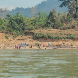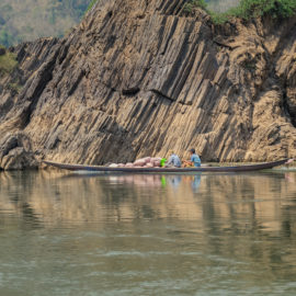 Nous sommes partis tôt le matin. Après avoir passé quelques heure sur notre embarcation très sympa puis avoir mangé un déjeuner préparé par la femme du capitaine, nous sommes descendus sur les bords du Mékong pour rencontrer les Khamu.