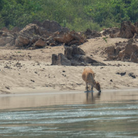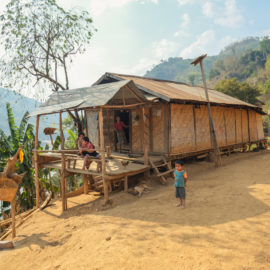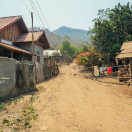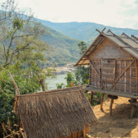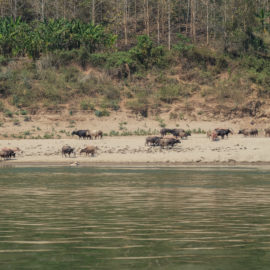 Après avoir monté quelques marches de sables, nous arrivions au village où nous avons été accueilli par une poignée d’enfants curieux mais assez peureux. Sur le bord du Mékong plusieurs petits villages comme celui-ci existent. Le guide nous expliquait que les villageois qui y vivent sont descendus des montagnes pour s’implanter ici. Ce sont des peuples nomades mais il semble que ce village restera pour les générations futures. Nous avons pu constater qu’ils ne vivent que de la culture du riz. En dehors de ça, ils mangent ce qu’ils trouvent c’est-à-dire un peu tout: des plantes, des feuilles, des racines et pour se faire un peu d’argent ils élèvent des buffles d’eau pour les vendre au grand village de Pakbeng. Également, certains villageois cherchent l’or dans la rivière.
