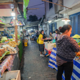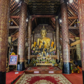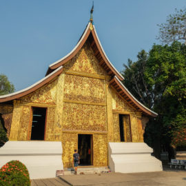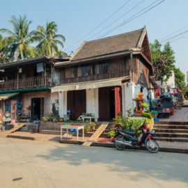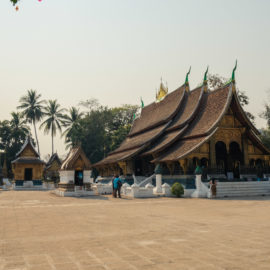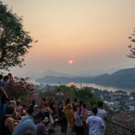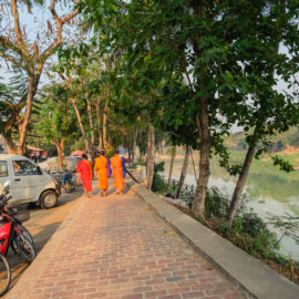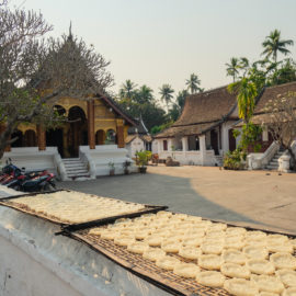 Ce matin là je me suis levée très tôt pour aller découvrir le rituel appelé « lak bat » qui a lieu chaque matin dans les rues de Luang Prabang. C’est vers 5h15 que je suis arrivée (Tom est resté au lit, c’était beaucoup trop tôt pour lui 😊) au niveau de la rue principale de la ville pour observer l’une des pratiques bouddhistes. C’est au petit matin que les moines et novices (les plus jeunes) défilent dans les rues pour récolter les offrandes des locaux et des touristes souhaitant participer à ce rituel. Avant que les moines passent, des femmes sont venues installer des sièges le long du trottoir. Ces derniers ont été investis par des locaux (souvent des femmes) mais aussi beaucoup de touristes. Les offrandes données servent d’abord à nourrir les moines et à ce que ces derniers prient pour les offrants. Dans leur panier les moines recueillent des boulettes de riz collant (ce qu’ils vont pouvoir aller manger ensuite), de l’eau, de l’argent et des petits paquets en feuille de bananier (qui doivent sûrement renfermer quelque chose à manger). Ce n’est que vers 6h que des dizaines de moines sont passés recueillir l’aumône avant de regagner l’un des temple situé aux alentours. J’étais curieuse de voir ce rituel sur lequel je ne m’étais volontairement pas trop renseigné pour observer par moi-même et tenter de le comprendre à ma façon. Sauf que j’ai été très déçu car forcément d’autres touristes étaient là mais ils ne cherchaient pas vraiment à comprendre ce qu’il se passait. Ils étaient surtout là pour le folklore et évidemment certains n’ont pas su respecter la cérémonie en se postant à 30cm des moines pour les photographier. Après avoir regardé les différents passages de moine je suis reparti vers l’auberge un peu dégoûté.