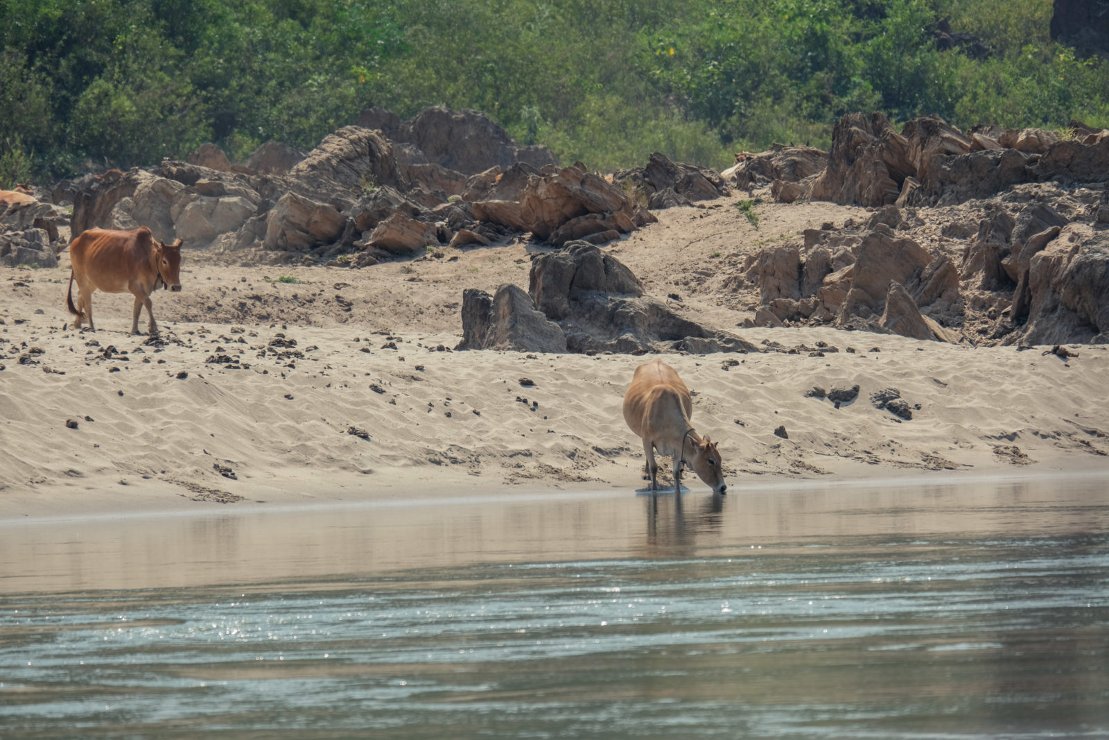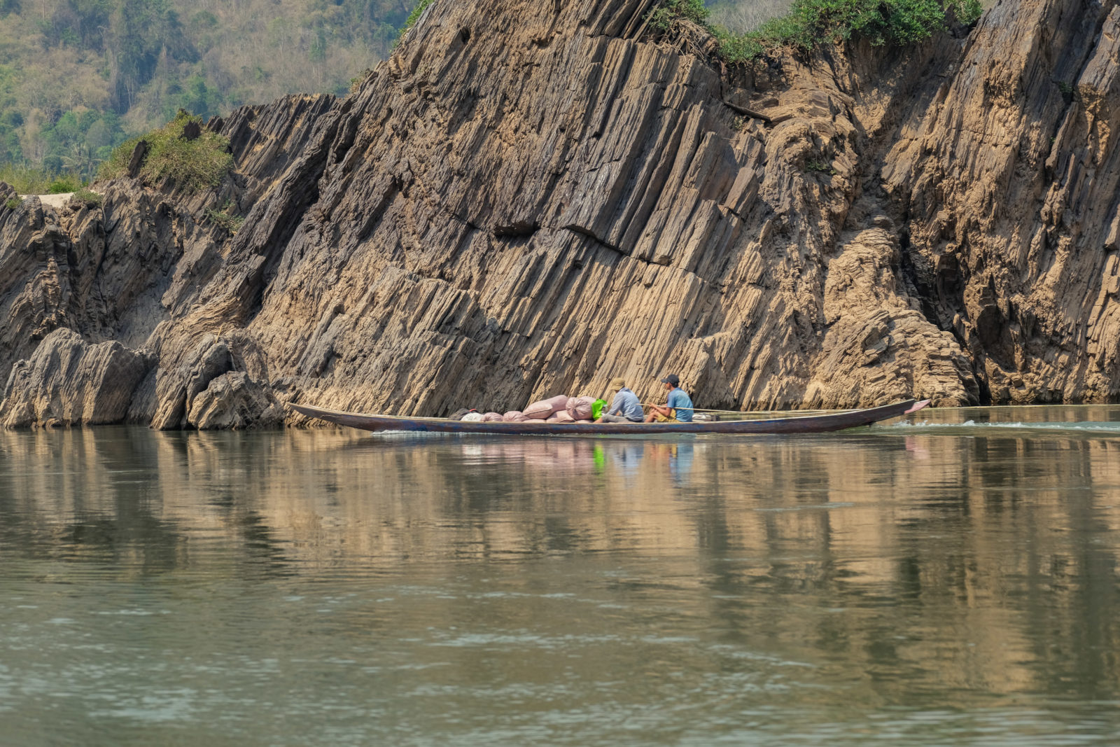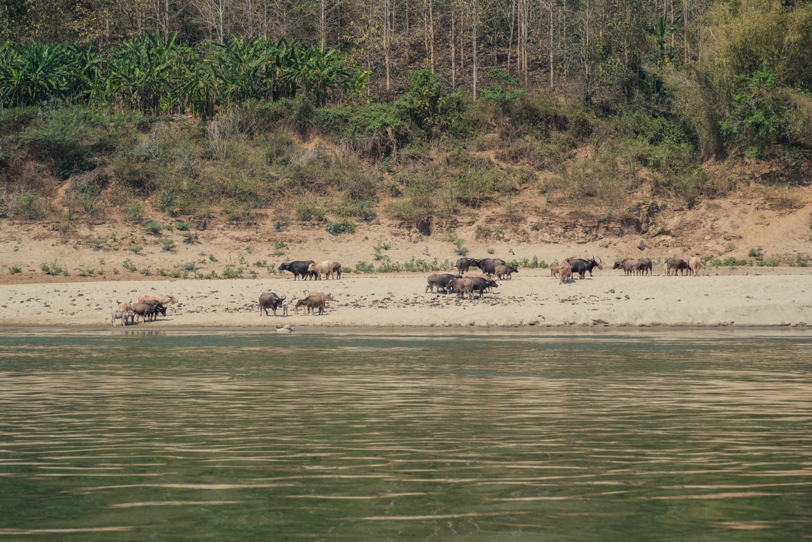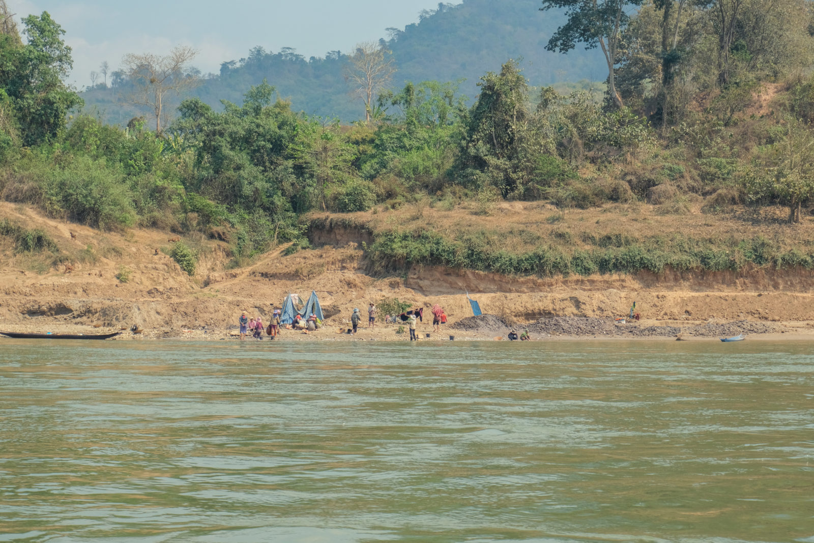 Nous sommes partis tôt le matin. Après avoir passé quelques heure sur notre embarcation très sympa puis avoir mangé un déjeuner préparé par la femme du capitaine, nous sommes descendus sur les bords du Mékong pour rencontrer les Khamu.