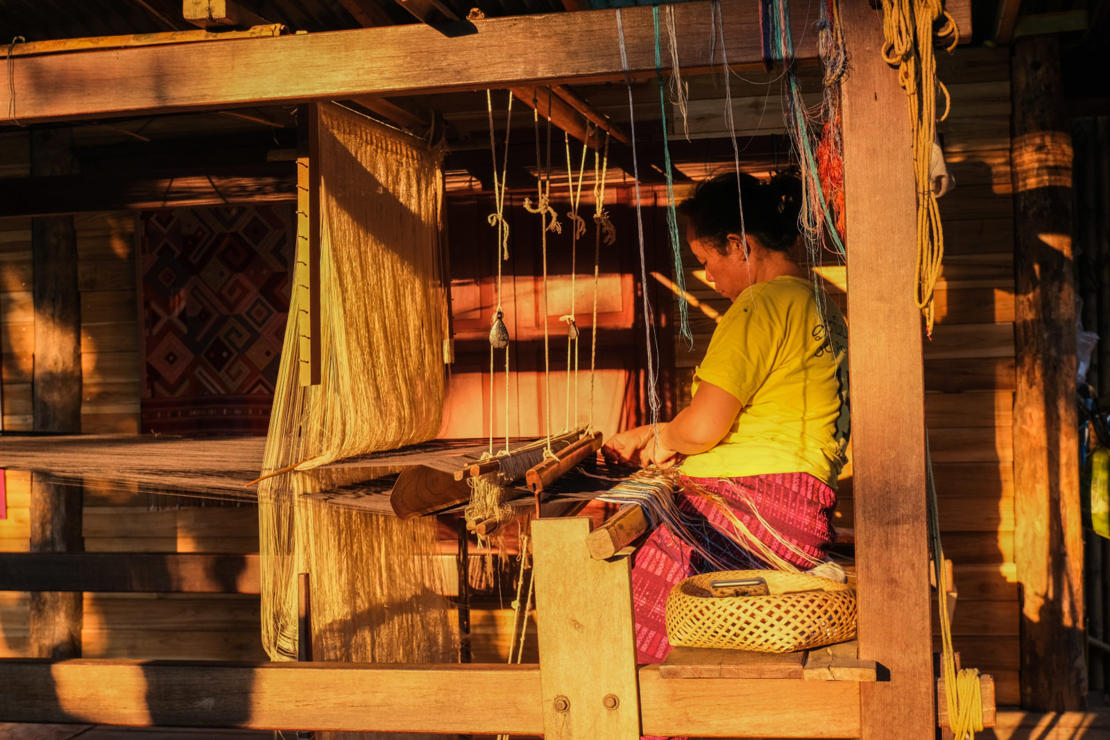 Outre cette ville très agréable, Luang Prabang offre aussi un accès à une belle campagne située aux alentours. Pour découvrir ces nouveaux joyaux de la nature, nous avons pris les services d’un tuk tuk à la journée pour aller voir le village de Hmong puis les cascades de Kuang Si. La route ou plutôt le chemin que nous empruntions était fait de nid de poule et de cailloux. C’était poussiéreux et ça secouait grave mais après une bonne demi-heure de trajet nous arrivions sur notre première destination. D’abord nous avons fait une halte chez un couple qui travaille le coton. Ils fabriquent toute sorte de vêtement qui sont très sympa ! La dame nous a expliqué, montré et installé à côté d’elle pour essayer chacune des étapes du travail du coton.