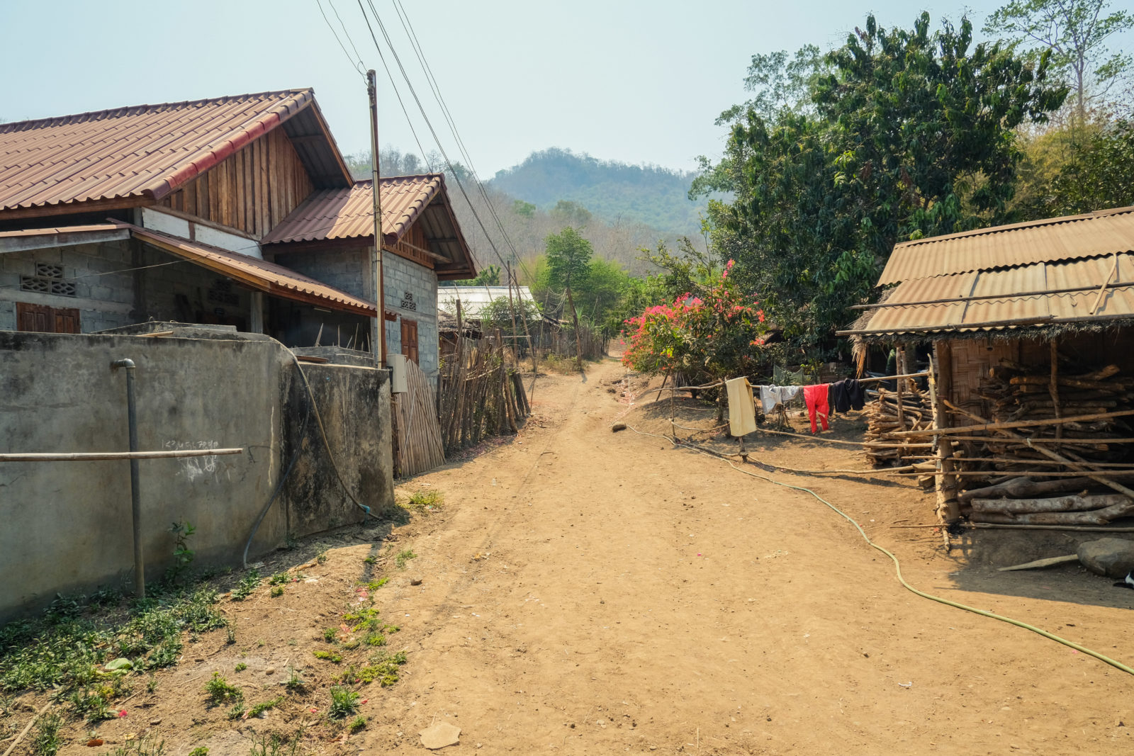 Après avoir monté quelques marches de sables, nous arrivions au village où nous avons été accueilli par une poignée d’enfants curieux mais assez peureux. Sur le bord du Mékong plusieurs petits villages comme celui-ci existent. Le guide nous expliquait que les villageois qui y vivent sont descendus des montagnes pour s’implanter ici. Ce sont des peuples nomades mais il semble que ce village restera pour les générations futures. Nous avons pu constater qu’ils ne vivent que de la culture du riz. En dehors de ça, ils mangent ce qu’ils trouvent c’est-à-dire un peu tout: des plantes, des feuilles, des racines et pour se faire un peu d’argent ils élèvent des buffles d’eau pour les vendre au grand village de Pakbeng. Également, certains villageois cherchent l’or dans la rivière.