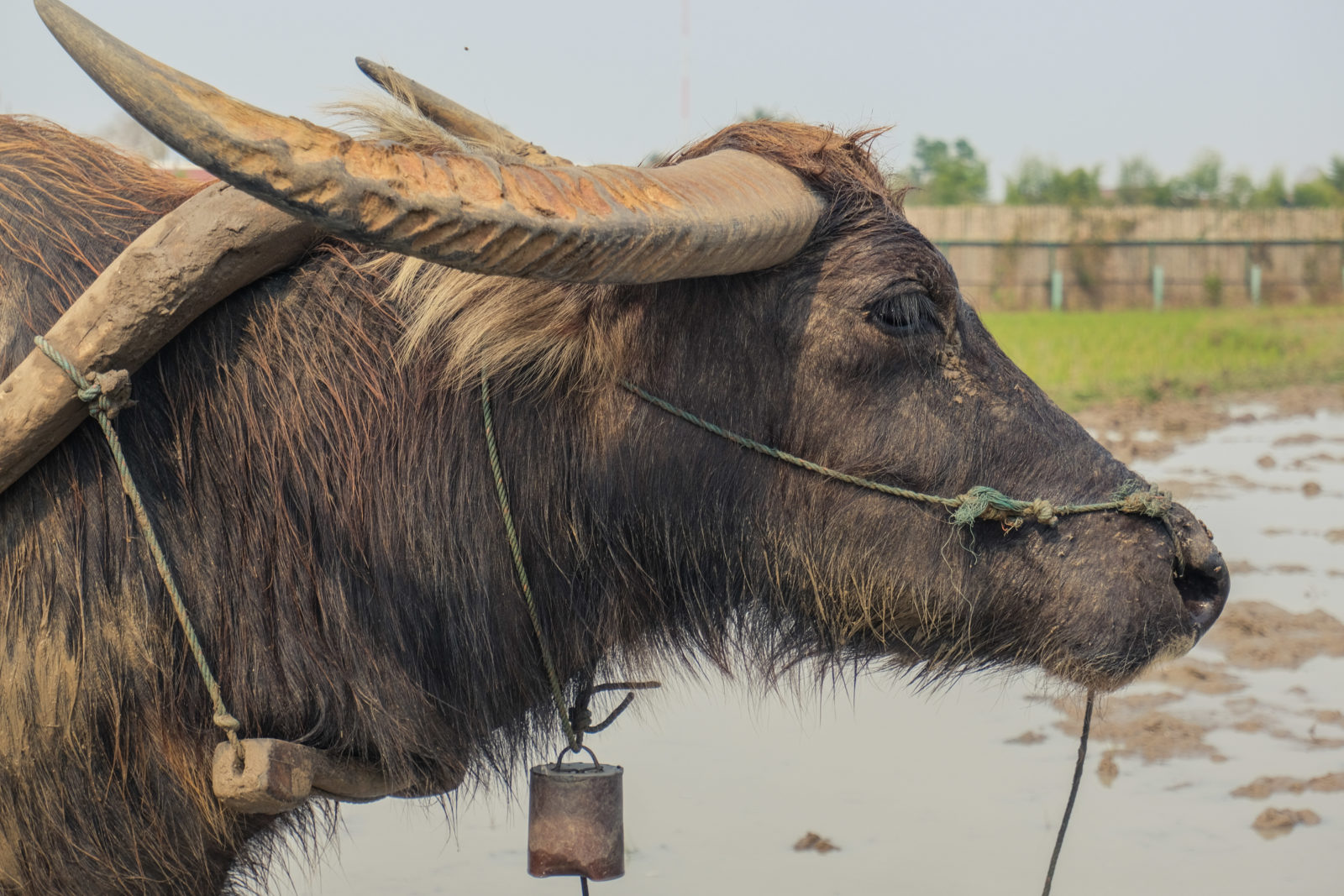 3 : travailler la terre à l’aide de Suzanne (la belle bufflone d’eau) où les pousses seront plantées