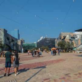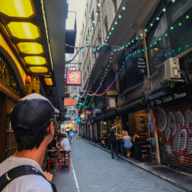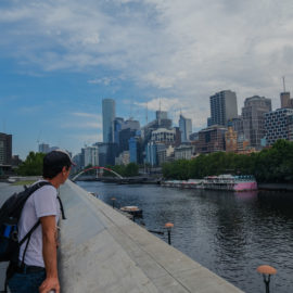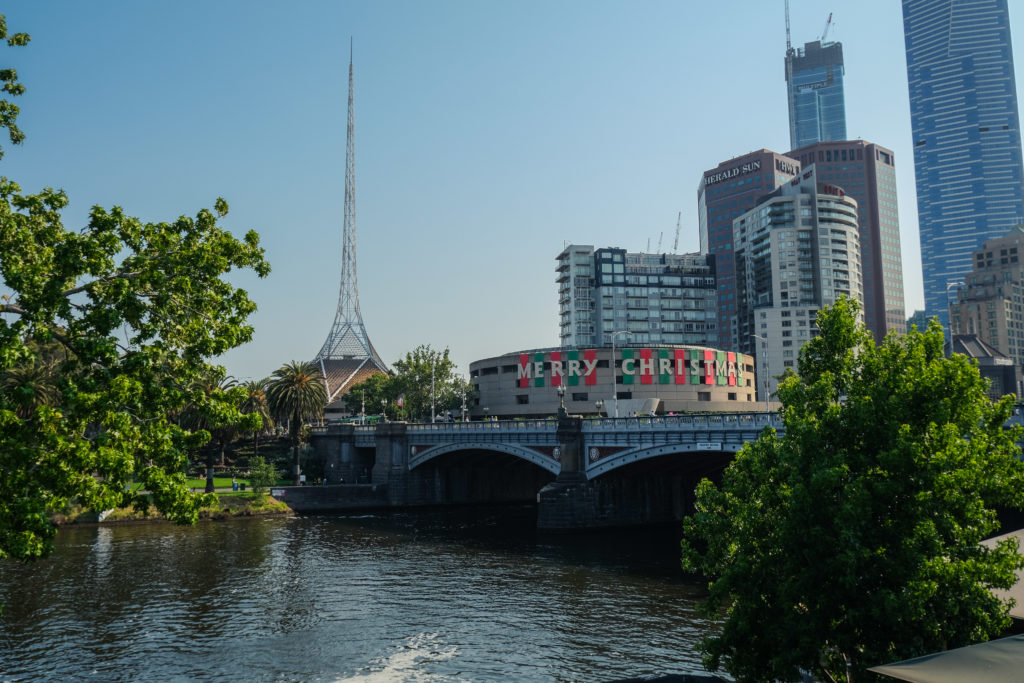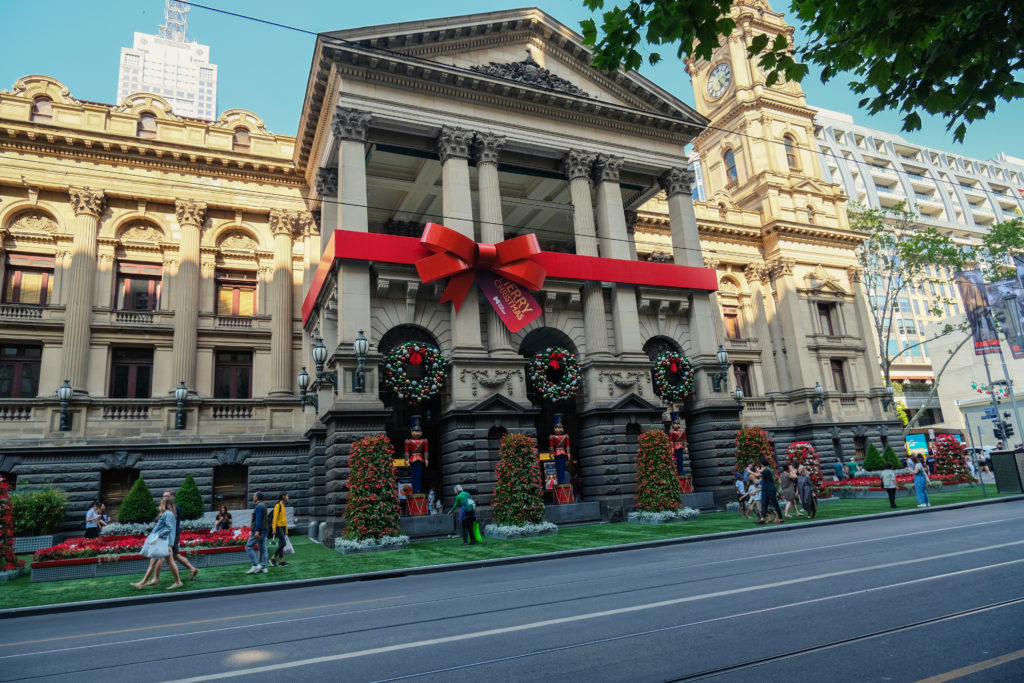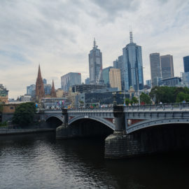 Voilà notre première vraie journée à Melbourne. Nous nous sommes rendu directement au centre ville pour y faire un tour et découvrir les avenues principales et ruelles en marchant un peu au hasard. Il y avait beaucoup de monde pour les fêtes, les vitrines d’un grand magasin étaient décorées comme celles qu’on connait à Paris. On voulait voir les décorations de noël, comme le sapin par exemple mais ils étaient déjà en train de tout enlever ! On a découvert la gare aux allures de vieux bâtiment, la rivière qui coule dans la ville, des vieux centres commerciaux avec statues et moulures… c’était sympa !