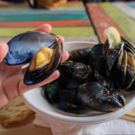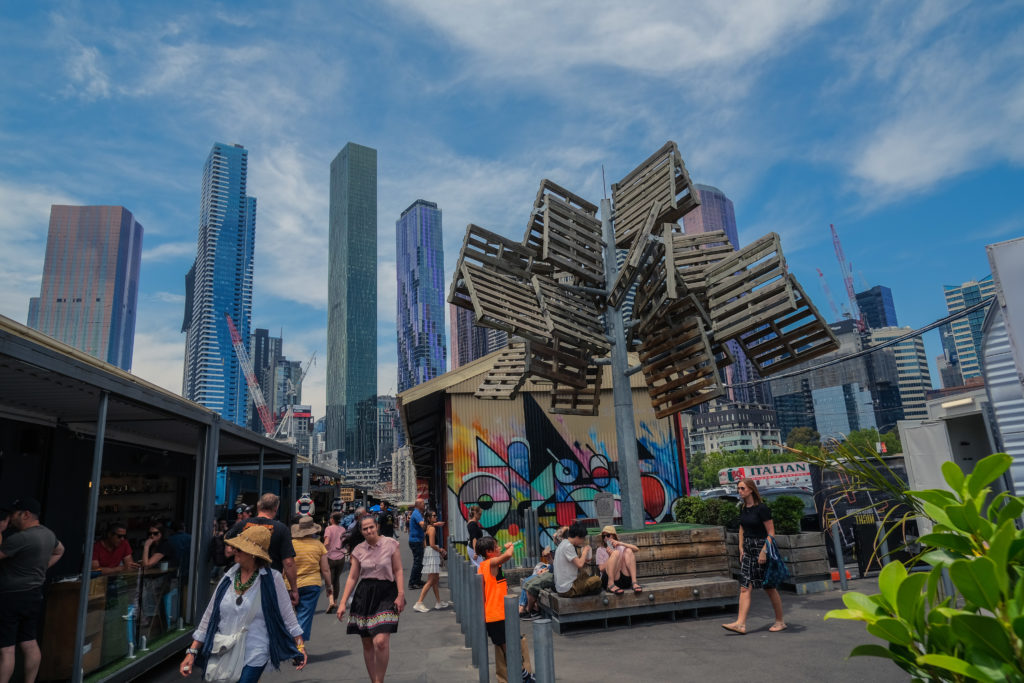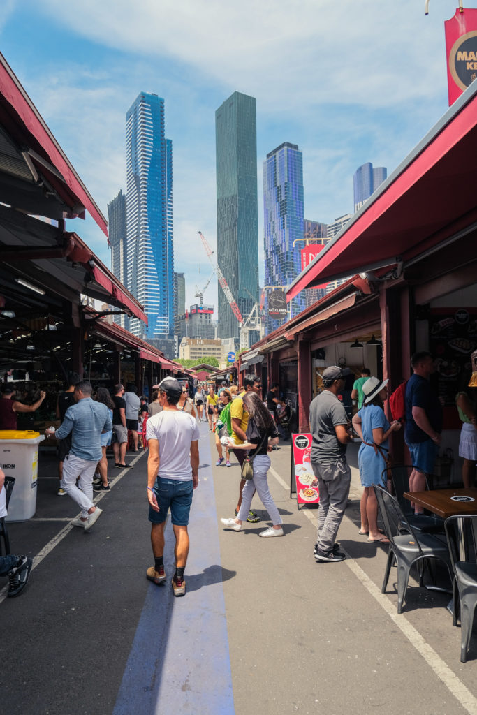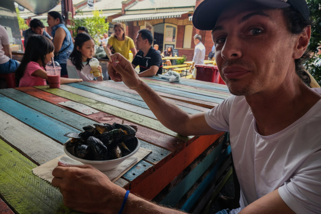 La matinée était vite passée et nous avions faim alors nous sommes partis en direction du grand « Queen Victoria Market ». C’est un grand marché couvert qui regroupe l’alimentation, le prêt à porté ambulant, les cadeaux souvenirs… et il y avait quelques petites boutiques d’artisan mais assez peu. Dommage ! On a trouvé de quoi manger car la street food est reine là-bas. Nous nous sommes dirigé vers un camion spécialisé dans la moule ! La taille des moules servis n’est clairement pas la même que celles qu’on a en France mais elles étaient très bonne.