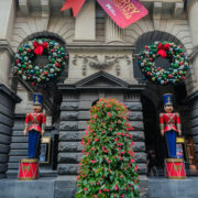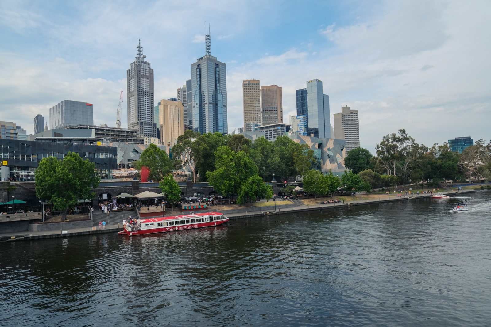 Voilà notre première vraie journée à Melbourne. Nous nous sommes rendu directement au centre ville pour y faire un tour et découvrir les avenues principales et ruelles en marchant un peu au hasard. Il y avait beaucoup de monde pour les fêtes, les vitrines d’un grand magasin étaient décorées comme celles qu’on connait à Paris. On voulait voir les décorations de noël, comme le sapin par exemple mais ils étaient déjà en train de tout enlever ! On a découvert la gare aux allures de vieux bâtiment, la rivière qui coule dans la ville, des vieux centres commerciaux avec statues et moulures… c’était sympa !