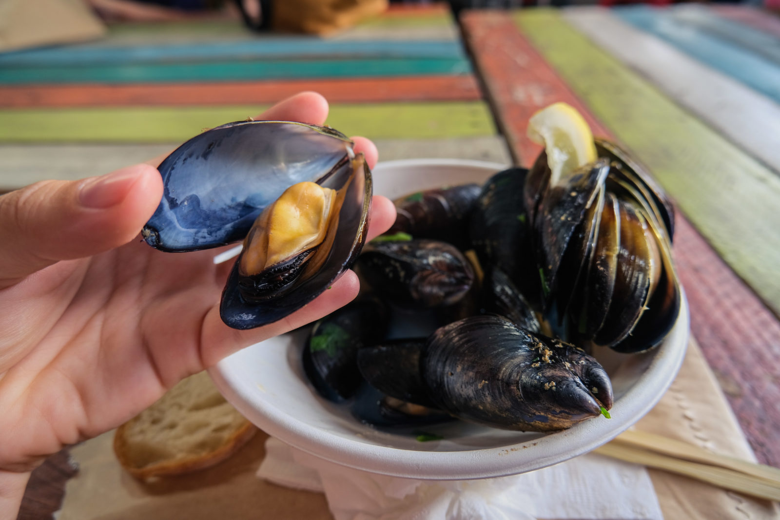 La matinée était vite passée et nous avions faim alors nous sommes partis en direction du grand « Queen Victoria Market ». C’est un grand marché couvert qui regroupe l’alimentation, le prêt à porté ambulant, les cadeaux souvenirs… et il y avait quelques petites boutiques d’artisan mais assez peu. Dommage ! On a trouvé de quoi manger car la street food est reine là-bas. Nous nous sommes dirigé vers un camion spécialisé dans la moule ! La taille des moules servis n’est clairement pas la même que celles qu’on a en France mais elles étaient très bonne.