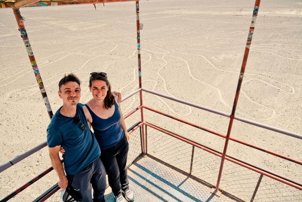 Au moment de sortir de l’hôtel, un guide est venu vers nous pour nous demander notre programme de la journée. On lui a expliqué vouloir aller observer les signes depuis le mirador. Il nous indique qu’il en existe 3 dont un naturel (il s’agit en fait d’une colline qui surplombe les lignes) et nous propose de nous y emmener.
