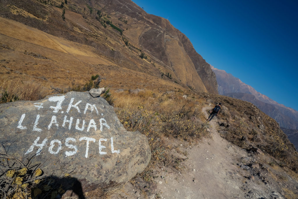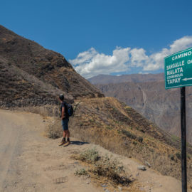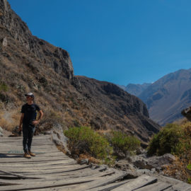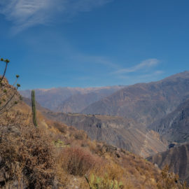 Levé comme d’hab vers 6h45 pour partir vers 8h. Après deux matinées à marcher j’étais pas hyper motivé pour cette dernière sachant que cette fois nous n’aurions que de la montée (et bien raide en plus). On a quitté l’hôtel à peine avant 8h et c’était parti pour 3h30 de montée comme indiqué sur le plan que l’office du tourisme nous avait fourni. Dès le début l’effort se faisait ressentir dans les jambes et le souffle. Et plus on montait plus j’avais l’impression que le sommet s’éloignait…bah c’était interminable en fait ! Au bout d’une heure de montée on a ressenti un grand besoin de faire une pause. Aïe, on aurait peut-être pas du, ça m’a coupé les pattes ! J’en pouvais plus mais y’avait encore beaucoup de chemin à faire. On a tenu bon, on a même doublé des gens !! Au final on devait quand même avoir un bon rythme parce qu’on est arrivé à Cabanaconde après 2h30 de marche ! Ce trek nous aura un peu lessivé, la première et dernière étape étaient corsées et la chaleur ne nous a pas aidé mais les paysages étaient géniaux et surtout on était tout seul ! Pas de centaine de touriste à l’horizon et ça, ça fait du bien. On aura pu voir deux condors et plusieurs colibris pendant ce trek. On aura rencontré pas mal de français et on aura sympathisé avec une allemande, un hollandais et un canadien. Si c’était à refaire je dirais sûrement oui mais pas tout de suite !!