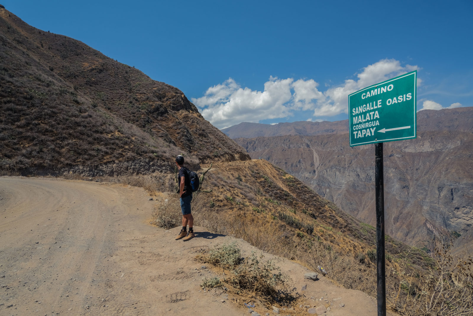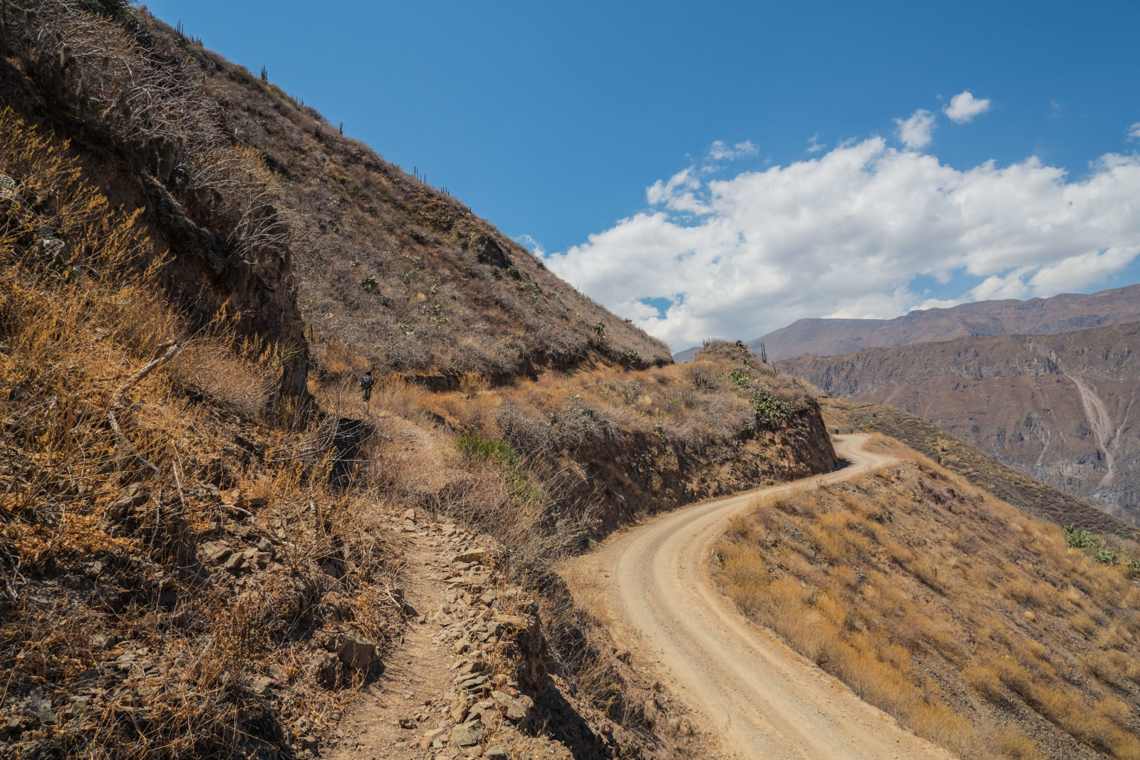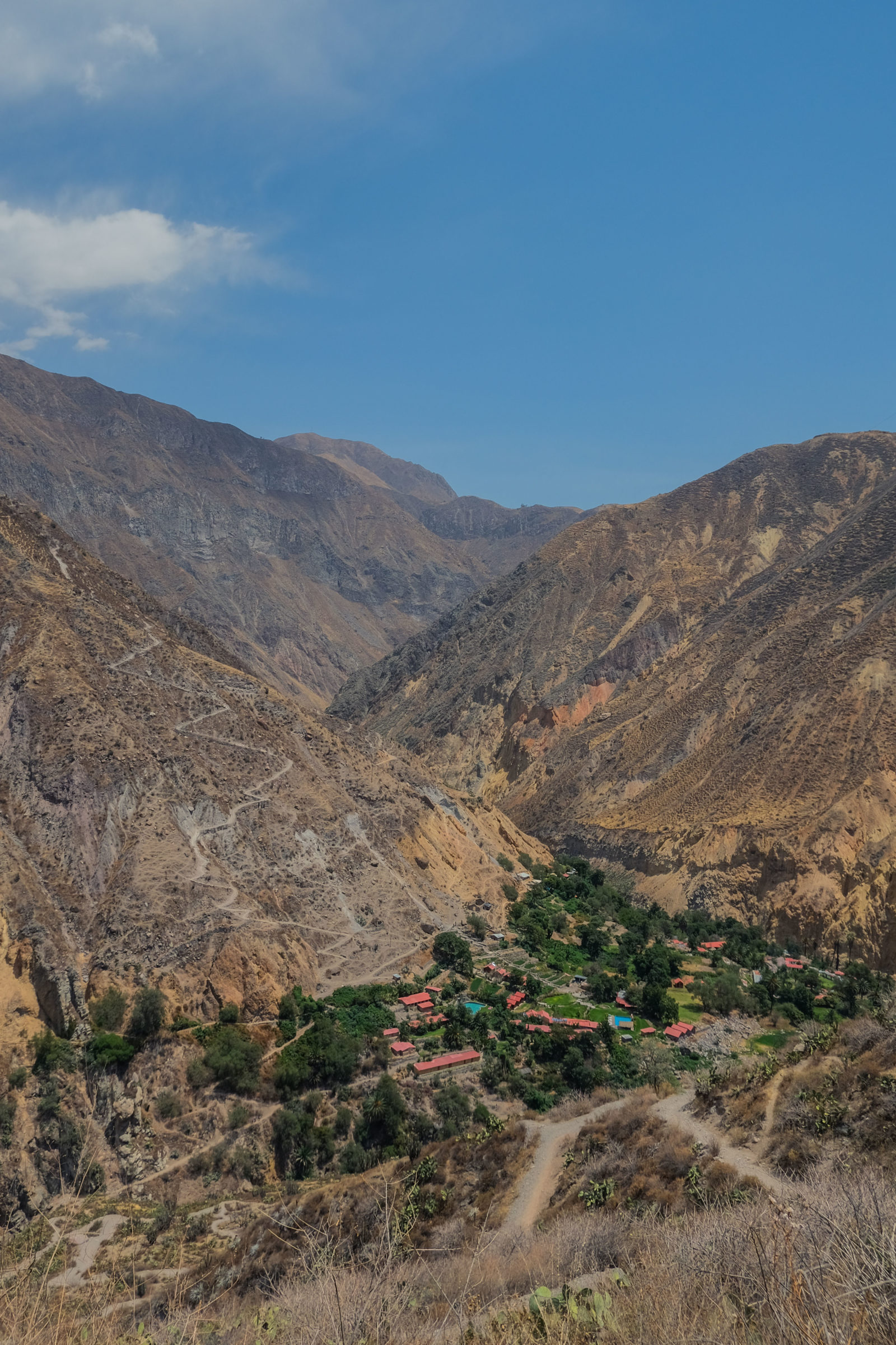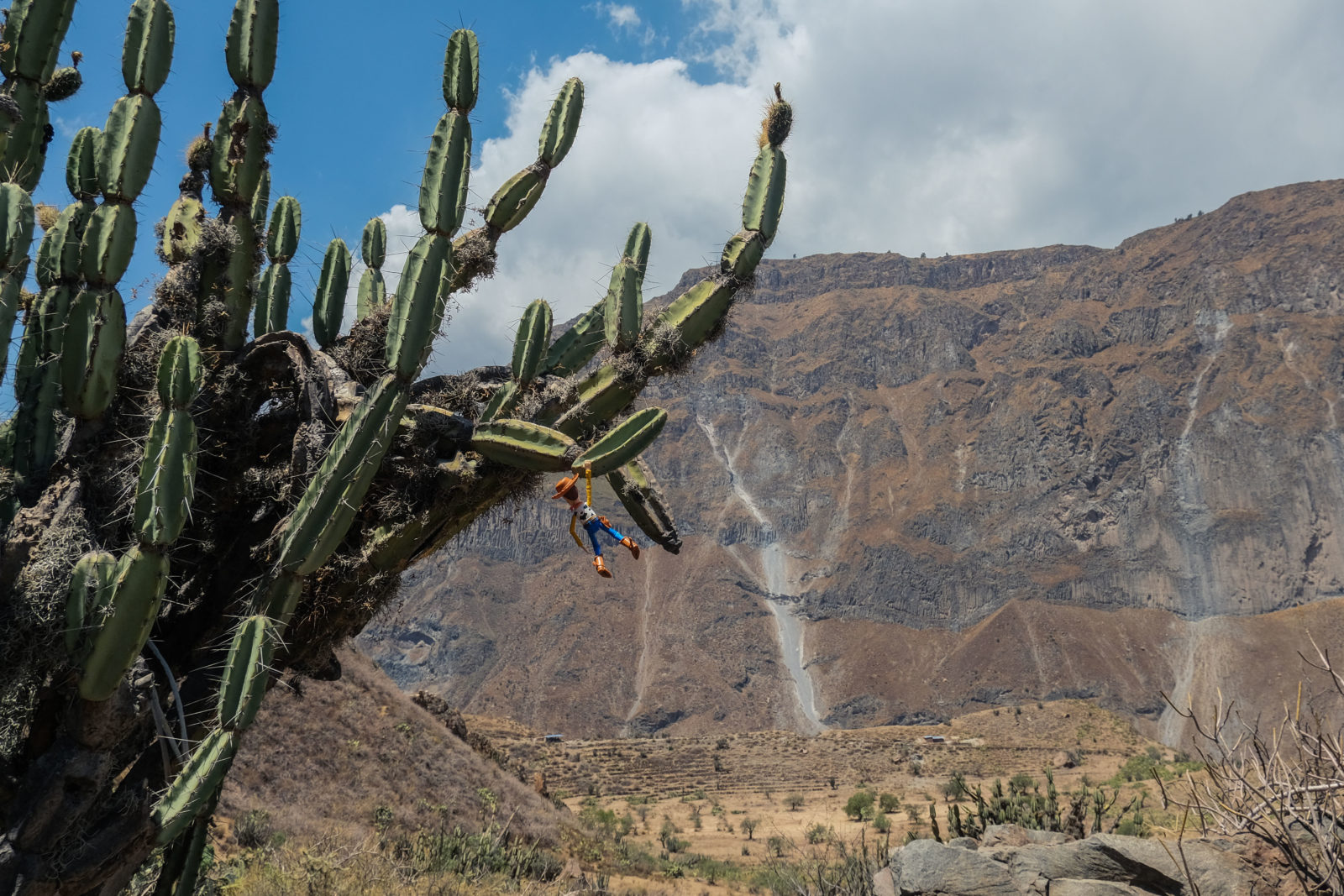 Levé comme d’hab vers 6h45 pour partir vers 8h. Après deux matinées à marcher j’étais pas hyper motivé pour cette dernière sachant que cette fois nous n’aurions que de la montée (et bien raide en plus). On a quitté l’hôtel à peine avant 8h et c’était parti pour 3h30 de montée comme indiqué sur le plan que l’office du tourisme nous avait fourni. Dès le début l’effort se faisait ressentir dans les jambes et le souffle. Et plus on montait plus j’avais l’impression que le sommet s’éloignait…bah c’était interminable en fait ! Au bout d’une heure de montée on a ressenti un grand besoin de faire une pause. Aïe, on aurait peut-être pas du, ça m’a coupé les pattes ! J’en pouvais plus mais y’avait encore beaucoup de chemin à faire. On a tenu bon, on a même doublé des gens !! Au final on devait quand même avoir un bon rythme parce qu’on est arrivé à Cabanaconde après 2h30 de marche ! Ce trek nous aura un peu lessivé, la première et dernière étape étaient corsées et la chaleur ne nous a pas aidé mais les paysages étaient géniaux et surtout on était tout seul ! Pas de centaine de touriste à l’horizon et ça, ça fait du bien. On aura pu voir deux condors et plusieurs colibris pendant ce trek. On aura rencontré pas mal de français et on aura sympathisé avec une allemande, un hollandais et un canadien. Si c’était à refaire je dirais sûrement oui mais pas tout de suite !!