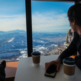 Cette fois la neige on voulait la goûter de plus près donc c’était parti pour aller dévaller les pistes de la station de Ruyoo. Petite station mais sympa avec des jolies pistes et pas trop de monde ! Avant de commencer notre sport de la journée nous avons pris le temps de retourner à la source chaude pour un petit bain de pied avant d’aller se congeler dans le froid (oui parce que même si on faisait ski et snow ben on n’avait pas les vêtements adéquats donc on s’est un peu cailler mais c’était cool) ! Il faisait beau et même certaines fois bon, quand nous restions au soleil. C’était la journée parfaite pour goûter la neige, on s’est éclaté et pris chacun une gamelle ! C’était vraiment chouette 😊
