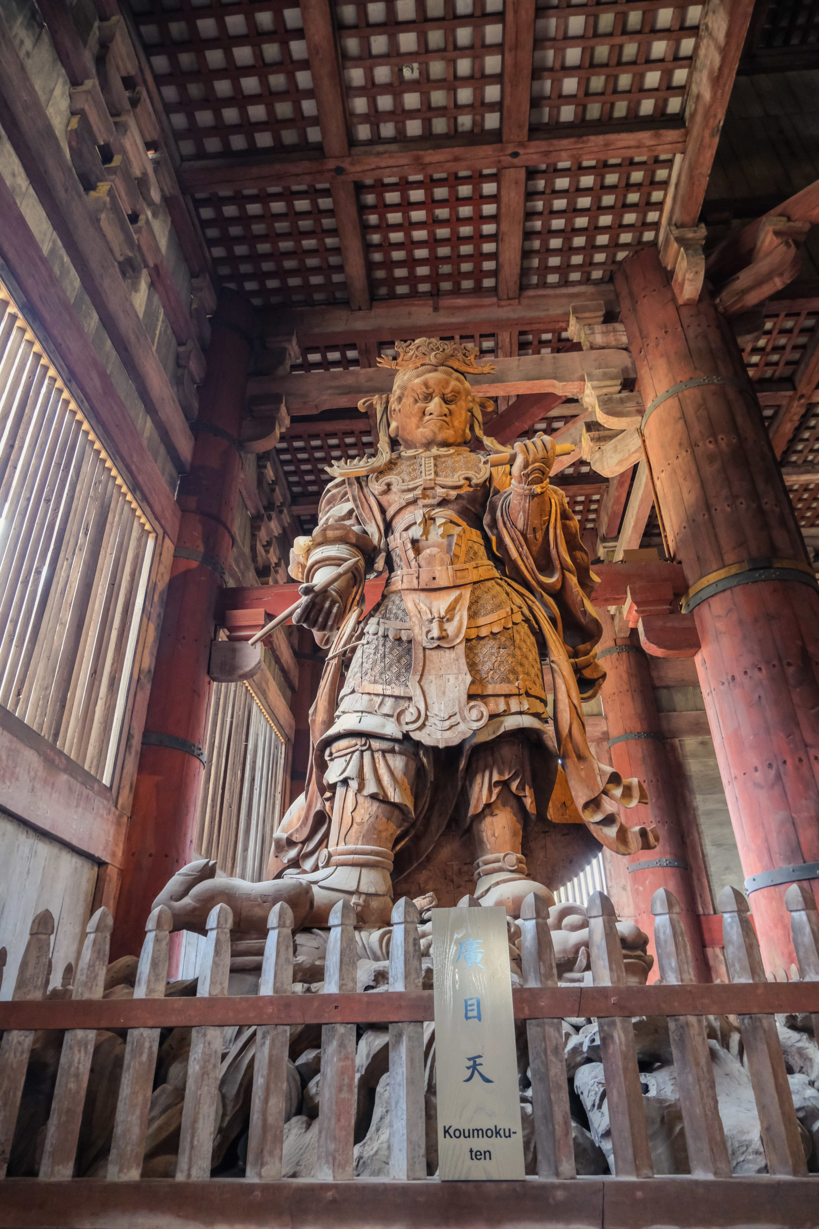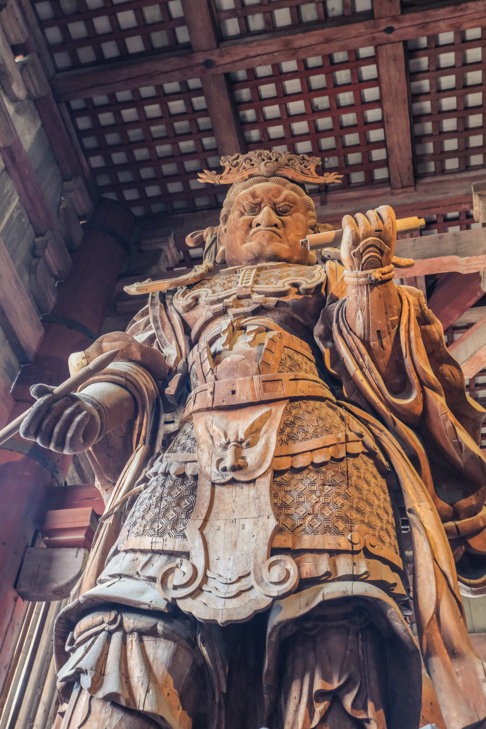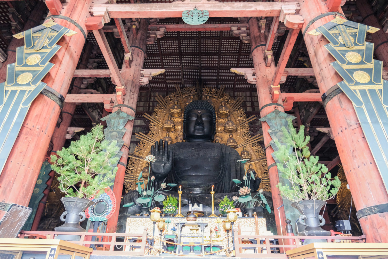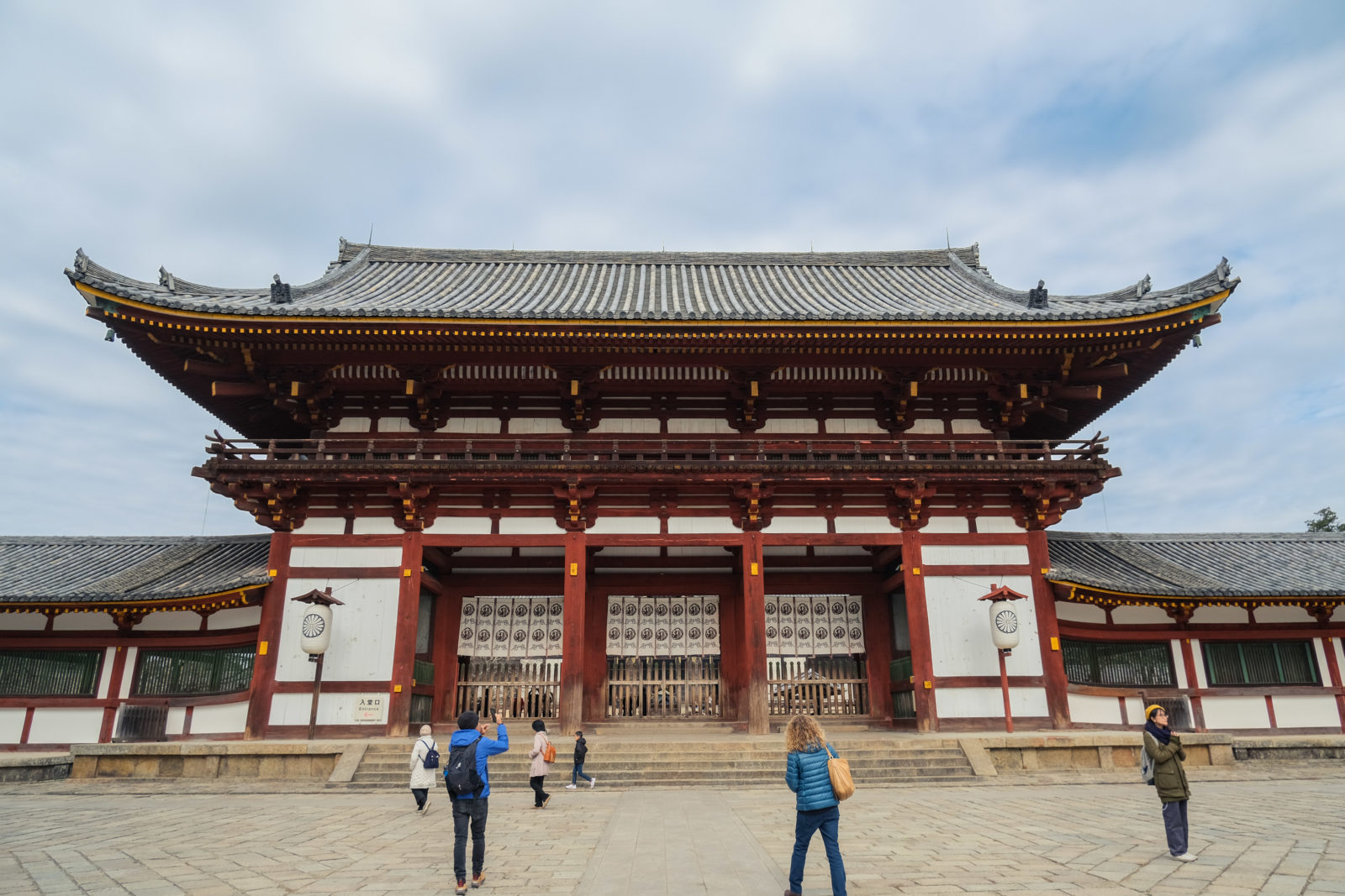 Pour cette belle journée qui nous attendait, nous avons décidé de reprendre le train en direction de la ville de Nara. Là bas il y a aussi pas mal de chose à faire mais ce qui nous intéressait c’était le temple autour duquel habitent des petits cerfs !! À peine arrivé près du site, nous étions déjà accueilli par ces p’tites bêtes. Évidemment, comme c’est un endroit très touristique, ils n’ont pas du tout peur de nous et il y a même énormément de gens qui leur donne à manger (nul !!) ! Nous sommes passé faire un p’tit coucou aux cerfs en traversant le parc du temple puis nous sommes aller visiter ce fameux temple dans lequel se trouve un énorme bouddha. Ensuite nous avons fait une bonne marche de deux heures pour aller voir la vue sur la ville depuis la colline. C’était froid (je crois qu’on n’est pas suffisamment équipé pour les grands froids) mais chouette !
