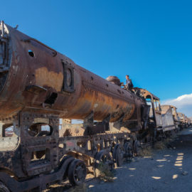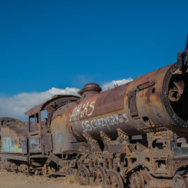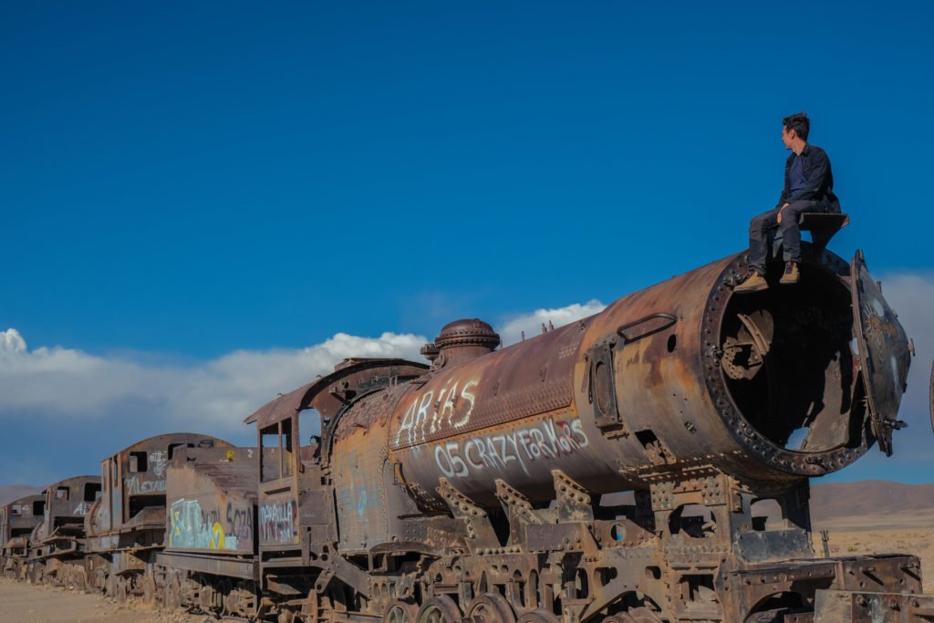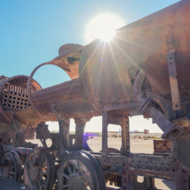 Nous avons commencé cette journée par des montagnes rouges comme nous avions pu voir à Tupiza. Elles forment de grands pics de roche rouge détachés de leur montagne. Nous avons déjeuner face à ce décor. Ensuite nous sommes arrivés dans un paysage désertique avec des dunes de sable magnifique et nous avons eu la chance de voir des émeus gambader dans la nature aux côtés des lamas. C’était génial de voir encore des animaux en pleine nature ! Ensuite nous sommes arrivés à Uyuni pour voir le célèbre cimetière de train. Depuis les années 70 ces trains à vapeur ou à charbon ont été laissé à l’abandon dans ce village entouré de désert. Il n’en sera rien fait surtout que maintenant c’est devenu un lieu touristique ! Le soir nous avons rejoins notre premier hôtel de sel dans lequel nous n’étions pas trop mal. Il ne faisait pas trop froid malgré l’altitude. Nous étions à quasiment 4000 mètres ! Sonia nous a préparé une bonne soupe de pâtes avec des p’tites légumes ensuite c’était purée et viande haché. Et tous au lit !