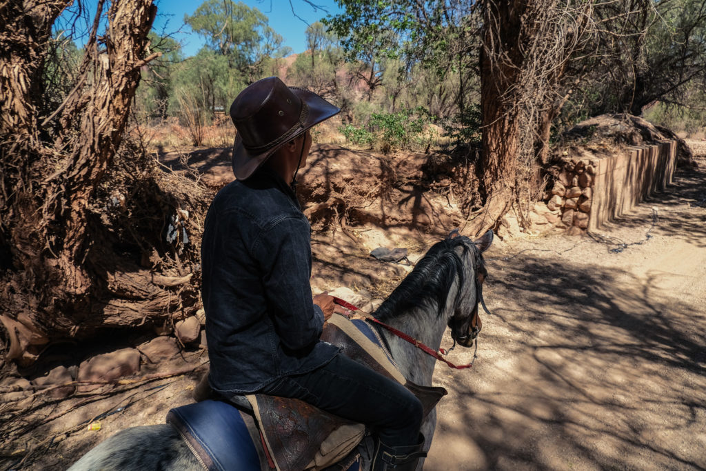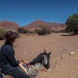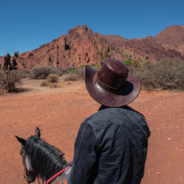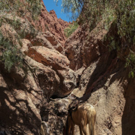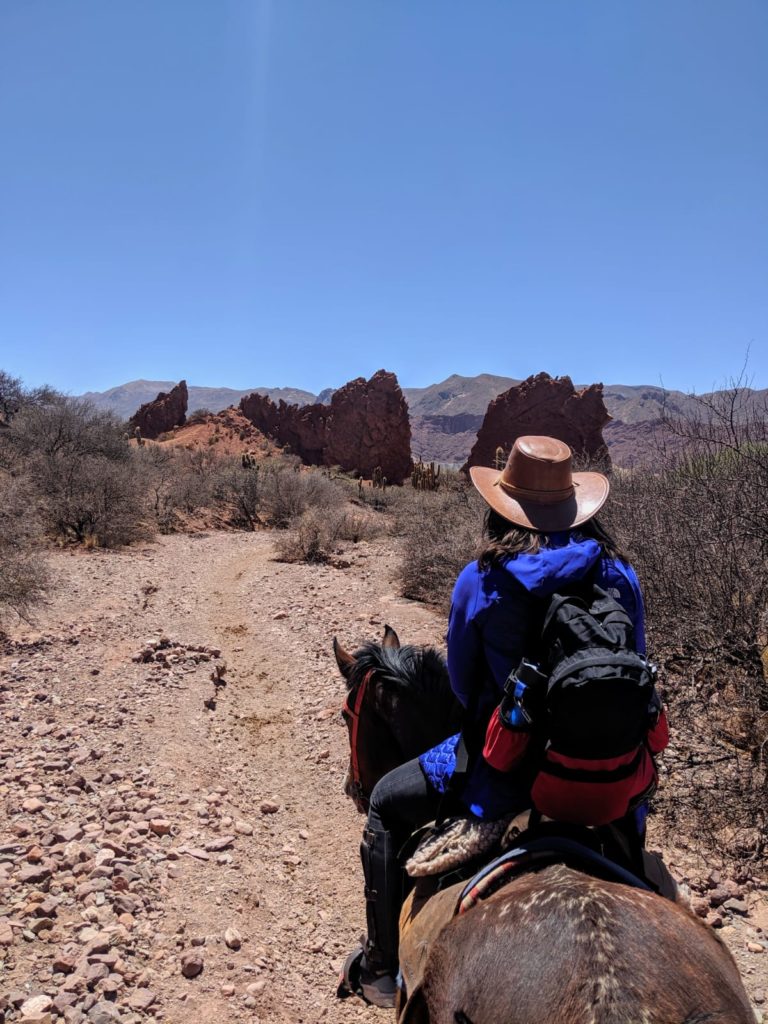 La balade était très jolie et mon cheval était très sympa, contrairement à celui de Tom qui n’avait pas vraiment envi d’être avec nous mais ça s’est bien passé quand même ! Bref, c’était très joli, nous étions dans des paysages de films de western. Il y avait des grandes, nan, des gigantesques montagnes rouges et des grands pics de roches formés par le vent et la pluie. Ils semblaient se détacher de leur montagne et prendre leur liberté ! C’était vraiment chouette. Nous sommes passés par la porte du diable (la légende dit que le diable serait passé par là pour enlever la fille d’un propriétaire du coin et l’aurait faite prisonnière dans une grotte. Personne ne saurait si elle a été retrouvée vivante ou pas mais son père serait parti à la poursuite du diable).