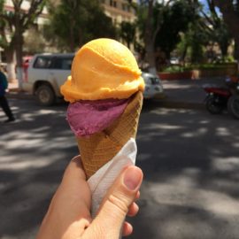 Après deux bonnes heures de pas et de trot, qu’on ne maîtrisait pas du tout, nous sommes revenus au point de départ pour retourner à l’hôtel nous changer avant d’aller en ville. Nous sommes allés retrouver Aurélie, avec qui nous avions prévu de faire l’excursion de 4 jours dans le désert de sel et le Sud Lipez. Après avoir déjeuner une grosse assiette de poulet, riz, pâtes et frites (tout ça dans le même plat, ils sont comme ça les boliviens !), nous avons craqué sur une petite glace mangue-mûre ! C’était très bon mais très sucré (c’était pas un sorbet comme j’aurais pu le croire), on a l’impression qu’ils aiment beaucoup le sucre ici car même la sauce tomate est sucrée ! Bon en tout cas, cette petite glace nous a bien requinqué avant de nous rendre à notre rendez-vous à l’agence Tupiza Tours pour réserver notre excursion. La p’tite dame qui nous a accueilli était très gentille et surtout elle parlait français ! Trop bien ! Elle nous a expliqué notre parcours pour les quatre jours à venir et nous a demandé de venir à l’agence vers 9h30 le lendemain matin, pour le départ ! On était surexcité et trop pressé d’y être ! Avec Aurelie on en parlait depuis les Îles Uros (chez Félix et Javier) et enfin on y était… enfin presque. Pour passer l’aprem, on décide d’aller nous balader à pied. Comme Aurelie n’avait pas fait le tour à cheval que nous avions fait le matin, nous lui avons proposé de l’emmener voir ce bel endroit. Alors que nous étions tranquillement en train de marché dans la direction des montagnes rouges, 4 chiens qui défendaient sûrement leur chemin ou leur maison, nous ont clairement demandé de partir. En gros, on s’est fait courser par ces chiens et l’un d’eux m’a croqué le bras. Rien de grave, ne paniquez pas, nous sommes allé directement aux urgences. J’ai été prise en charge à peine après avoir franchi la porte. Je suis reparti avec un joli pansement, des antibiotiques et une ordonnance de visite dans une clinique pour le lendemain matin.