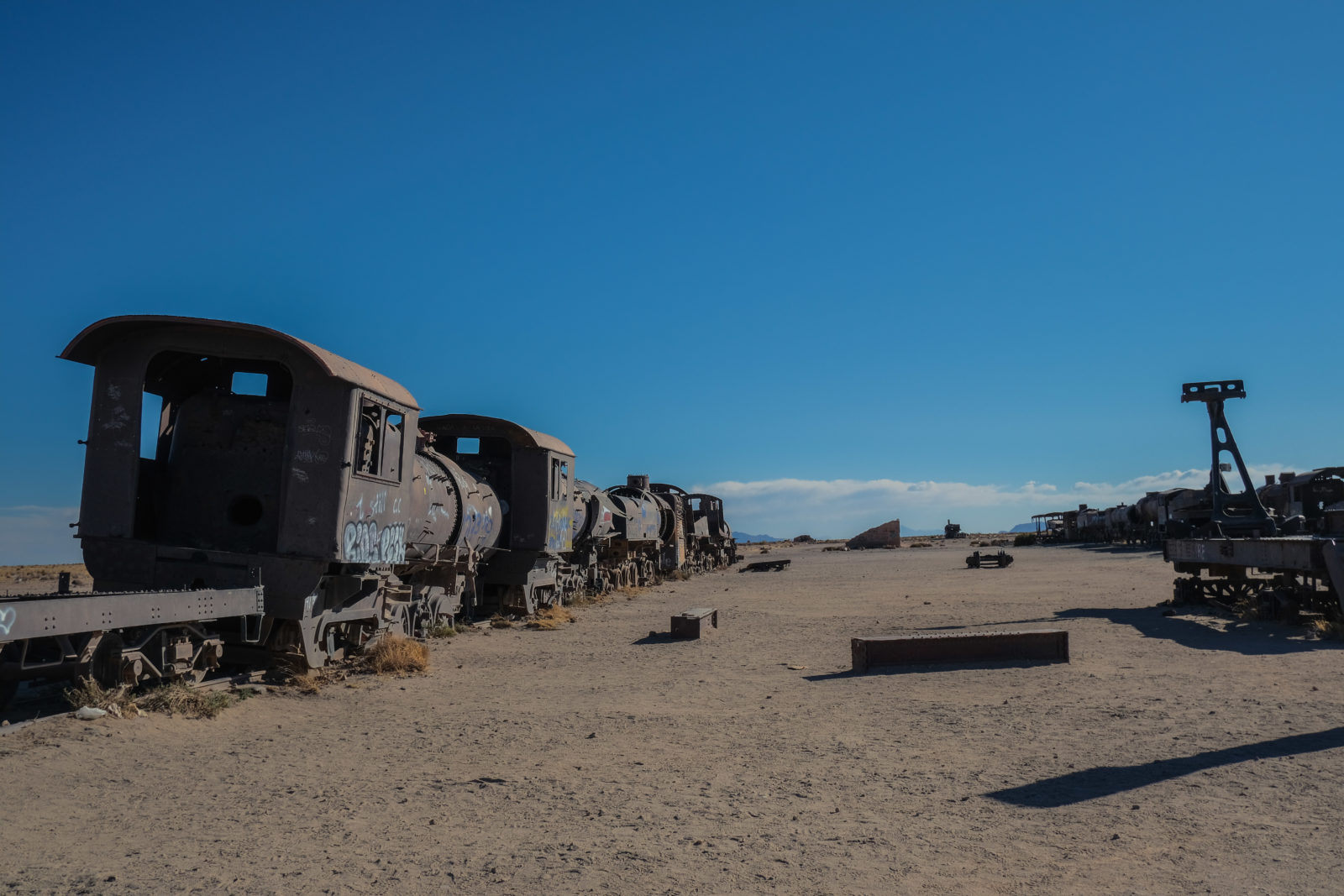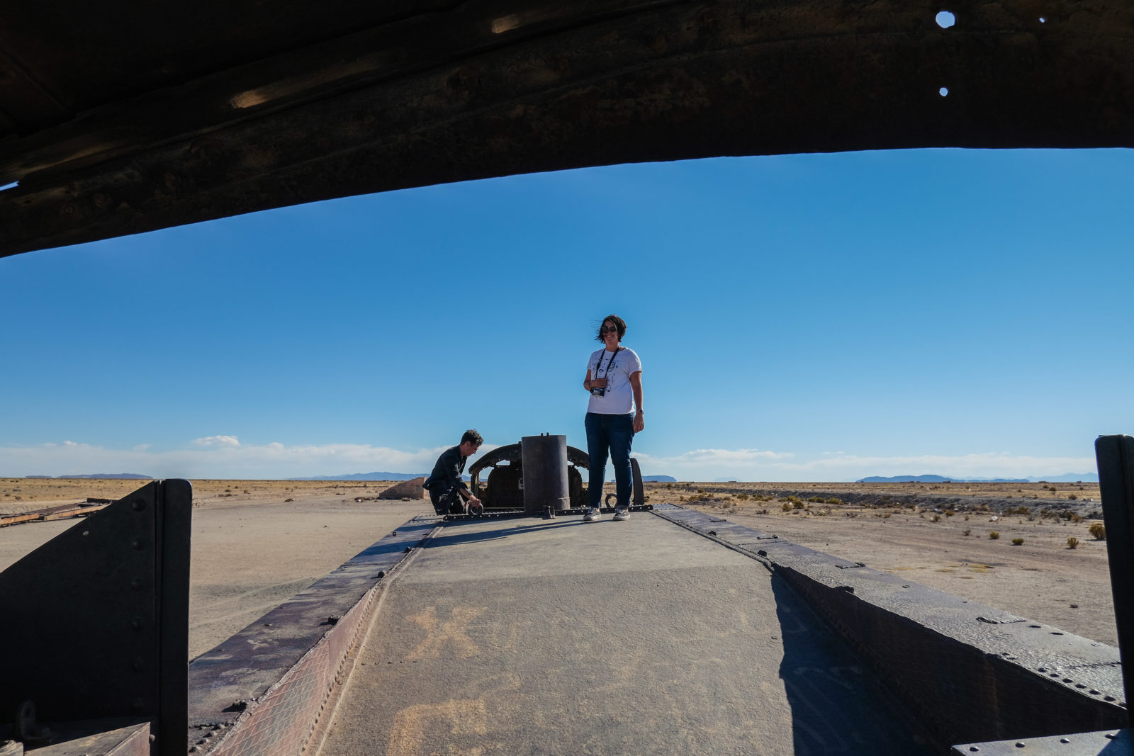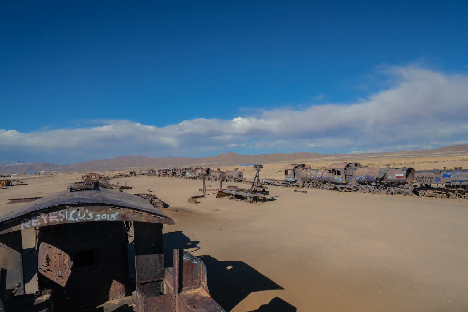 Nous avons commencé cette journée par des montagnes rouges comme nous avions pu voir à Tupiza. Elles forment de grands pics de roche rouge détachés de leur montagne. Nous avons déjeuner face à ce décor. Ensuite nous sommes arrivés dans un paysage désertique avec des dunes de sable magnifique et nous avons eu la chance de voir des émeus gambader dans la nature aux côtés des lamas. C’était génial de voir encore des animaux en pleine nature ! Ensuite nous sommes arrivés à Uyuni pour voir le célèbre cimetière de train. Depuis les années 70 ces trains à vapeur ou à charbon ont été laissé à l’abandon dans ce village entouré de désert. Il n’en sera rien fait surtout que maintenant c’est devenu un lieu touristique ! Le soir nous avons rejoins notre premier hôtel de sel dans lequel nous n’étions pas trop mal. Il ne faisait pas trop froid malgré l’altitude. Nous étions à quasiment 4000 mètres ! Sonia nous a préparé une bonne soupe de pâtes avec des p’tites légumes ensuite c’était purée et viande haché. Et tous au lit !