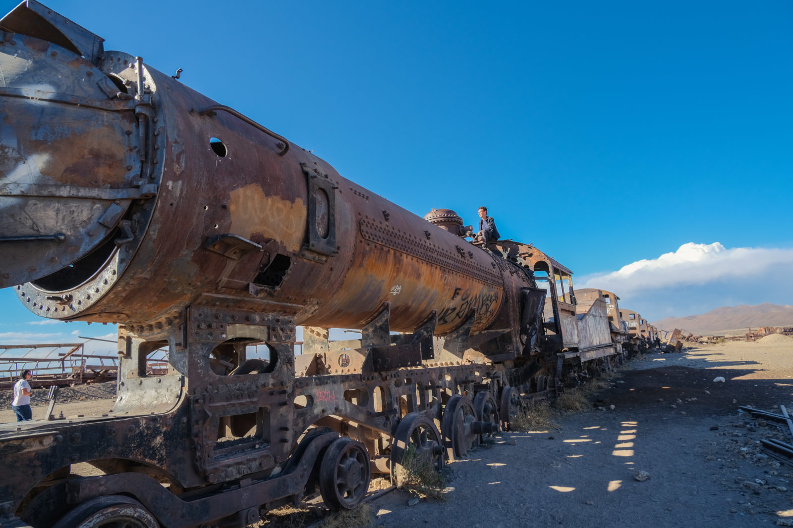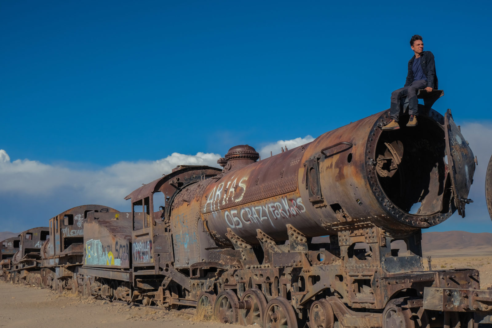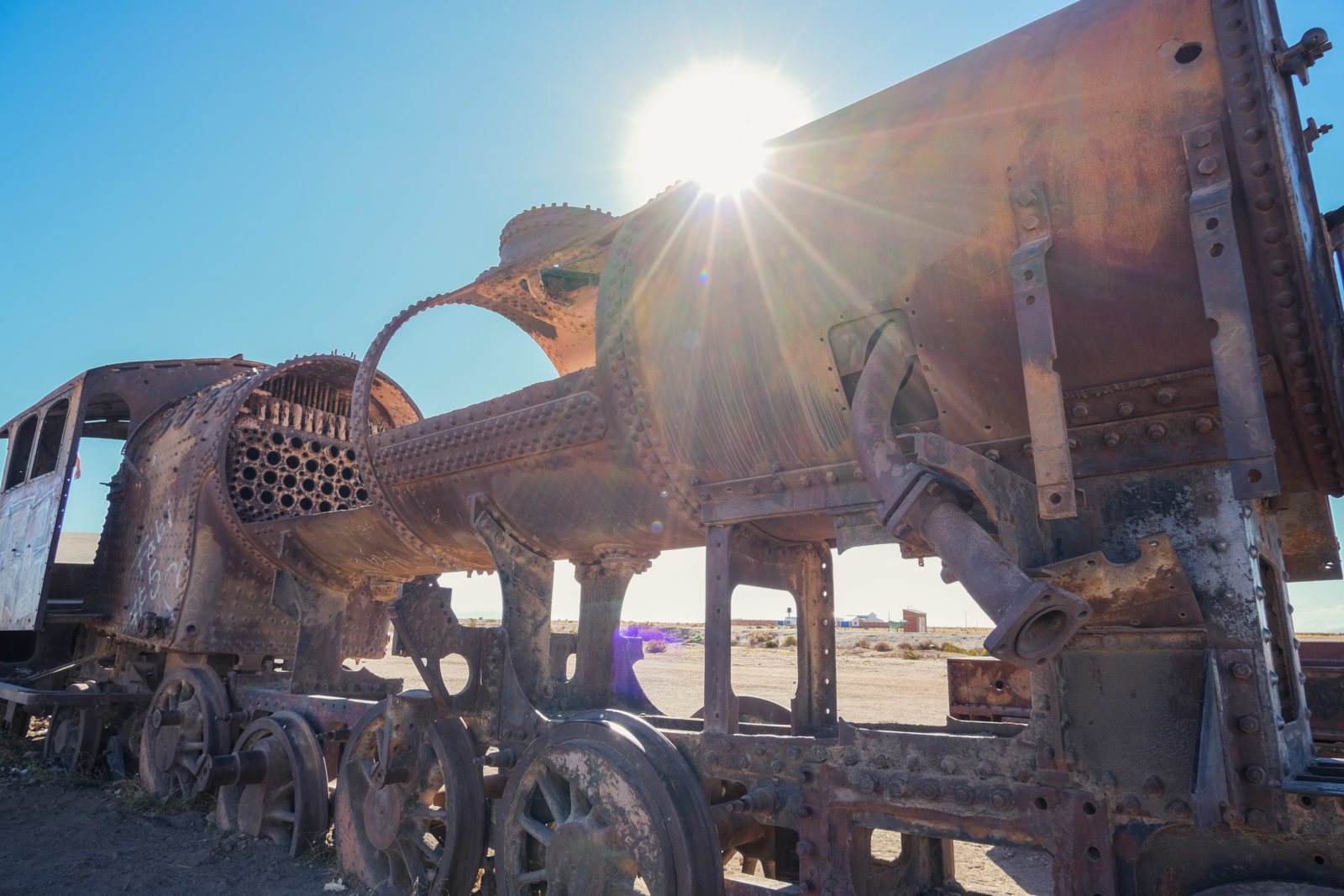 Nous avons commencé cette journée par des montagnes rouges comme nous avions pu voir à Tupiza. Elles forment de grands pics de roche rouge détachés de leur montagne. Nous avons déjeuner face à ce décor. Ensuite nous sommes arrivés dans un paysage désertique avec des dunes de sable magnifique et nous avons eu la chance de voir des émeus gambader dans la nature aux côtés des lamas. C’était génial de voir encore des animaux en pleine nature ! Ensuite nous sommes arrivés à Uyuni pour voir le célèbre cimetière de train. Depuis les années 70 ces trains à vapeur ou à charbon ont été laissé à l’abandon dans ce village entouré de désert. Il n’en sera rien fait surtout que maintenant c’est devenu un lieu touristique ! Le soir nous avons rejoins notre premier hôtel de sel dans lequel nous n’étions pas trop mal. Il ne faisait pas trop froid malgré l’altitude. Nous étions à quasiment 4000 mètres ! Sonia nous a préparé une bonne soupe de pâtes avec des p’tites légumes ensuite c’était purée et viande haché. Et tous au lit !