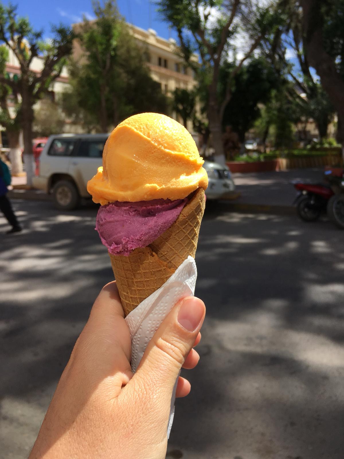 Après deux bonnes heures de pas et de trot, qu’on ne maîtrisait pas du tout, nous sommes revenus au point de départ pour retourner à l’hôtel nous changer avant d’aller en ville. Nous sommes allés retrouver Aurélie, avec qui nous avions prévu de faire l’excursion de 4 jours dans le désert de sel et le Sud Lipez. Après avoir déjeuner une grosse assiette de poulet, riz, pâtes et frites (tout ça dans le même plat, ils sont comme ça les boliviens !), nous avons craqué sur une petite glace mangue-mûre ! C’était très bon mais très sucré (c’était pas un sorbet comme j’aurais pu le croire), on a l’impression qu’ils aiment beaucoup le sucre ici car même la sauce tomate est sucrée ! Bon en tout cas, cette petite glace nous a bien requinqué avant de nous rendre à notre rendez-vous à l’agence Tupiza Tours pour réserver notre excursion. La p’tite dame qui nous a accueilli était très gentille et surtout elle parlait français ! Trop bien ! Elle nous a expliqué notre parcours pour les quatre jours à venir et nous a demandé de venir à l’agence vers 9h30 le lendemain matin, pour le départ ! On était surexcité et trop pressé d’y être ! Avec Aurelie on en parlait depuis les Îles Uros (chez Félix et Javier) et enfin on y était… enfin presque. Pour passer l’aprem, on décide d’aller nous balader à pied. Comme Aurelie n’avait pas fait le tour à cheval que nous avions fait le matin, nous lui avons proposé de l’emmener voir ce bel endroit. Alors que nous étions tranquillement en train de marché dans la direction des montagnes rouges, 4 chiens qui défendaient sûrement leur chemin ou leur maison, nous ont clairement demandé de partir. En gros, on s’est fait courser par ces chiens et l’un d’eux m’a croqué le bras. Rien de grave, ne paniquez pas, nous sommes allé directement aux urgences. J’ai été prise en charge à peine après avoir franchi la porte. Je suis reparti avec un joli pansement, des antibiotiques et une ordonnance de visite dans une clinique pour le lendemain matin.