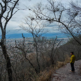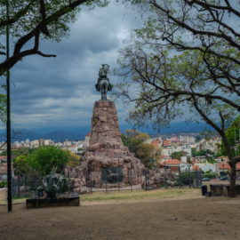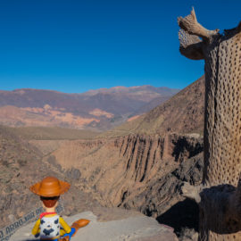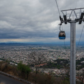 Nous n’avons jamais eu de toilettes aussi propre et aussi belle (la fresque du plafond était géniale nan ?!). Après s’être extasié devant ces super toilettes et ce bout de musée que nous avons visité clandestinement, nous sommes reparti en direction du mirador de la ville. Ce point de vue est situé sur une colline accessible en téléphérique et à pied ! Comme nous étions bien motivés évidemment nous sommes montés à pied. Après 1070 marches gravi et 14 maisons de Jésus croisés sur le chemin (non non, les argentins ou sud-américain ne sont pas très croyant… c,est plus que ça, ils sont à fond !!) nous étions arrivés en haut ! Le temps était assez gris mais la vue depuis cette hauteur restait sympa à voir. On a pu se rendre compte que Salta est une ville assez grande quand même ! En redescendant nous avons traversé un parc qui ressemblait au paradis des enfants tellement il y avait de jeux et de trucs à manger (barbe à papa, pop corn, glace…). Comme il restait des places sur les balançoires nous avons pris place pour tenter de nous envoler ! La concurrence était rude, le but de Tom était de faire le tour de la barre du haut… personne n’aura jamais été aussi haut que lui !
