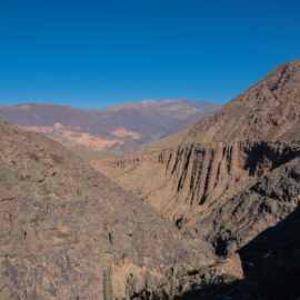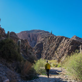 Cette fois-ci nous ne pouvions pas traîner a l’hôtel car nous n’avions que quelques heures devant nous avant de retourner à Salta. Le soir même avec Tom nous prenions un avions pour aller à Buenos Aires et Salta se trouvait à environs 3h de route. Après un bon p’tit dej (et avoir piqué, sans le savoir, des tartines de pain sans gluten aux autres gens de la table… on n’étaient pas fiers mais le gars de l’auberge ne nous avait pas prévenue que c’était dû sans gluten. Et, ces tartines avaient l’air hyper appétissante alors bon…), nous voilà parti pour la gorge du diable. La Garganta del Diablo est une cascade qui se trouve à 8km de Tilcara perdue dans les montagnes. Avec notre petite voiture ça nous secoue un peu mais heureusement qu’elle était là pour nous emmener car à pied (même si la balade doit être vraiment sympa) nous n’avions pas le temps. À l’arrivée en haut du chemin, nous avons laissé la voiture et sommes parti à pied pour rejoindre cette fameuse gorge du diable. Il y avait environs 20 minutes de marche. Encore une fois nous étions seuls, nous avons juste croisés deux couples qui prenaient le chemin en sens inverse !