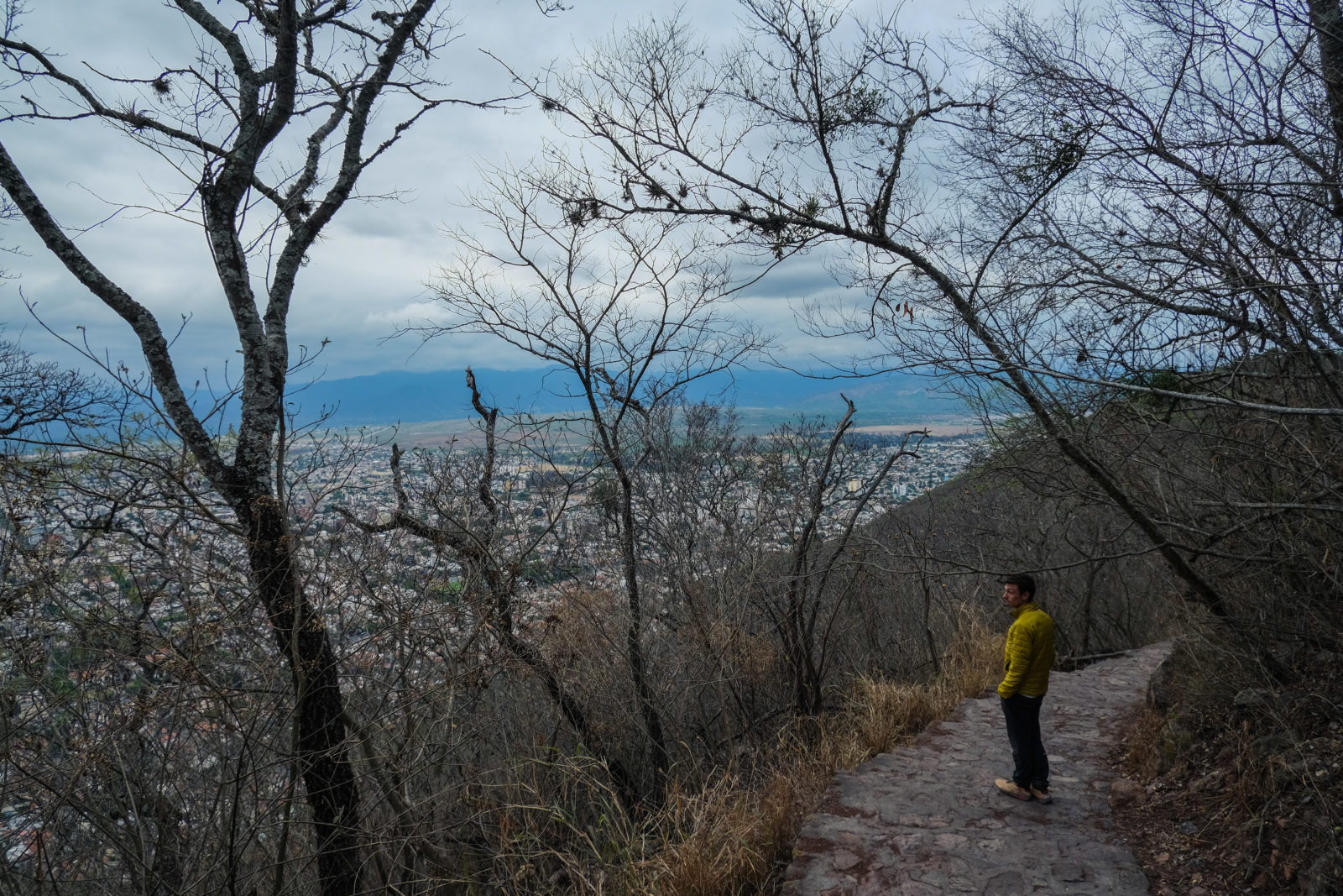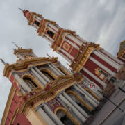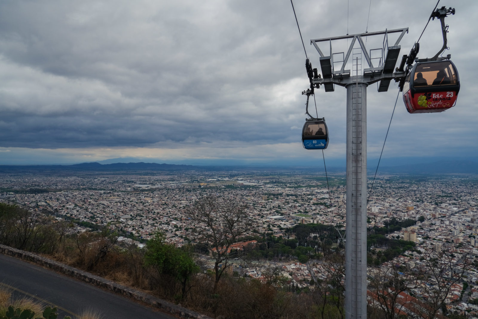 Nous n’avons jamais eu de toilettes aussi propre et aussi belle (la fresque du plafond était géniale nan ?!). Après s’être extasié devant ces super toilettes et ce bout de musée que nous avons visité clandestinement, nous sommes reparti en direction du mirador de la ville. Ce point de vue est situé sur une colline accessible en téléphérique et à pied ! Comme nous étions bien motivés évidemment nous sommes montés à pied. Après 1070 marches gravi et 14 maisons de Jésus croisés sur le chemin (non non, les argentins ou sud-américain ne sont pas très croyant… c,est plus que ça, ils sont à fond !!) nous étions arrivés en haut ! Le temps était assez gris mais la vue depuis cette hauteur restait sympa à voir. On a pu se rendre compte que Salta est une ville assez grande quand même ! En redescendant nous avons traversé un parc qui ressemblait au paradis des enfants tellement il y avait de jeux et de trucs à manger (barbe à papa, pop corn, glace…). Comme il restait des places sur les balançoires nous avons pris place pour tenter de nous envoler ! La concurrence était rude, le but de Tom était de faire le tour de la barre du haut… personne n’aura jamais été aussi haut que lui !