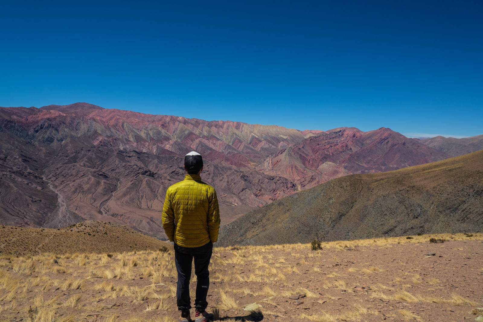 Ce matin là nous devions nous lever tôt (vers 7h30) mais les troupes ont eu du mal à décollé de la chambre d’hôtel. Au final nous sommes parti vers 9h30-45 pour aller voir les montagnes aux 14 couleurs. On voulait y aller tôt pour éviter les éventuels bus rempli de touristes mais après avoir parcourus nos quelques kilomètres de chemin dans notre mini voiture (sans option 4×4) nous sommes arrivés au sommet et seul 2-3 voitures étaient garés ! Nous avions de la chance, sur le chemin piéton menant tout droit aux montagnes, nous étions seul avec la pachamama ! Ces montagnes étaient encore plus impressionnantes que celle aux 7 couleurs que nous avons vu au Pérou. Là il n’y avait pas qu’une seule montagne coloré mais bien une chaîne et avec un relief étonnant ! Nous étions tous les 3 sous le charme, comme envoûté par ce paysage magique et tellement incroyable 🤩