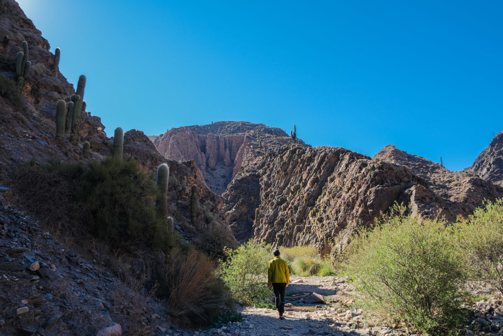 Cette fois-ci nous ne pouvions pas traîner a l’hôtel car nous n’avions que quelques heures devant nous avant de retourner à Salta. Le soir même avec Tom nous prenions un avions pour aller à Buenos Aires et Salta se trouvait à environs 3h de route. Après un bon p’tit dej (et avoir piqué, sans le savoir, des tartines de pain sans gluten aux autres gens de la table… on n’étaient pas fiers mais le gars de l’auberge ne nous avait pas prévenue que c’était dû sans gluten. Et, ces tartines avaient l’air hyper appétissante alors bon…), nous voilà parti pour la gorge du diable. La Garganta del Diablo est une cascade qui se trouve à 8km de Tilcara perdue dans les montagnes. Avec notre petite voiture ça nous secoue un peu mais heureusement qu’elle était là pour nous emmener car à pied (même si la balade doit être vraiment sympa) nous n’avions pas le temps. À l’arrivée en haut du chemin, nous avons laissé la voiture et sommes parti à pied pour rejoindre cette fameuse gorge du diable. Il y avait environs 20 minutes de marche. Encore une fois nous étions seuls, nous avons juste croisés deux couples qui prenaient le chemin en sens inverse !